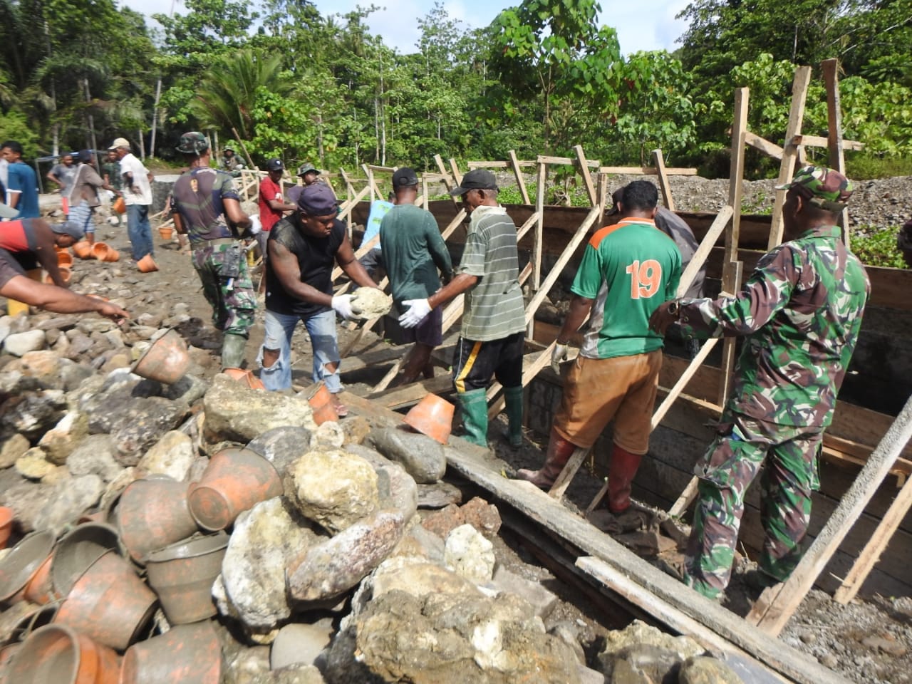 Beginilah Semangat Satgas TMMD 123 Kodim 1510/Sula Dalam Menyelesaikan Pengerjaan Sasaran Fisik