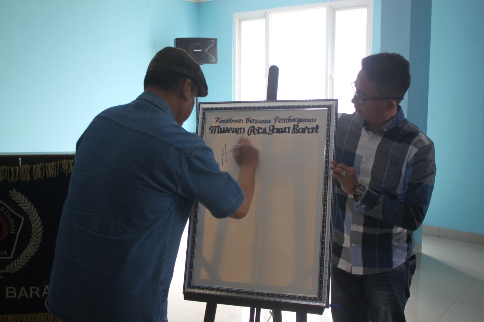 Seminar dan soft lounching museum pers Jabar, ditandai dengan membubuhkan tandatangan bersama sebagai tanda dimulainya pembangunan Museum Pers Jabar.