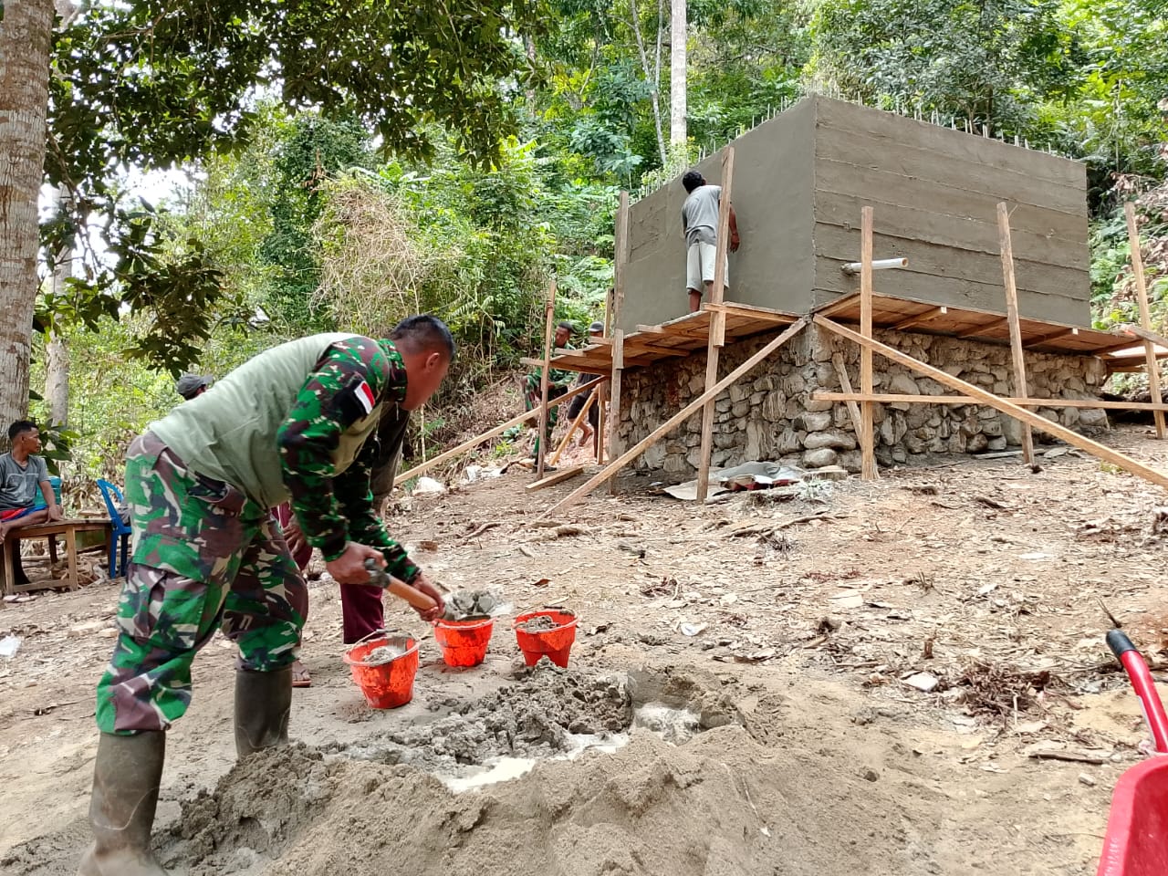 Program Manunggal Air TMMD Ke-123 Kodim 1510/Sula, Pembangunan Bak Air Hampir Rampung