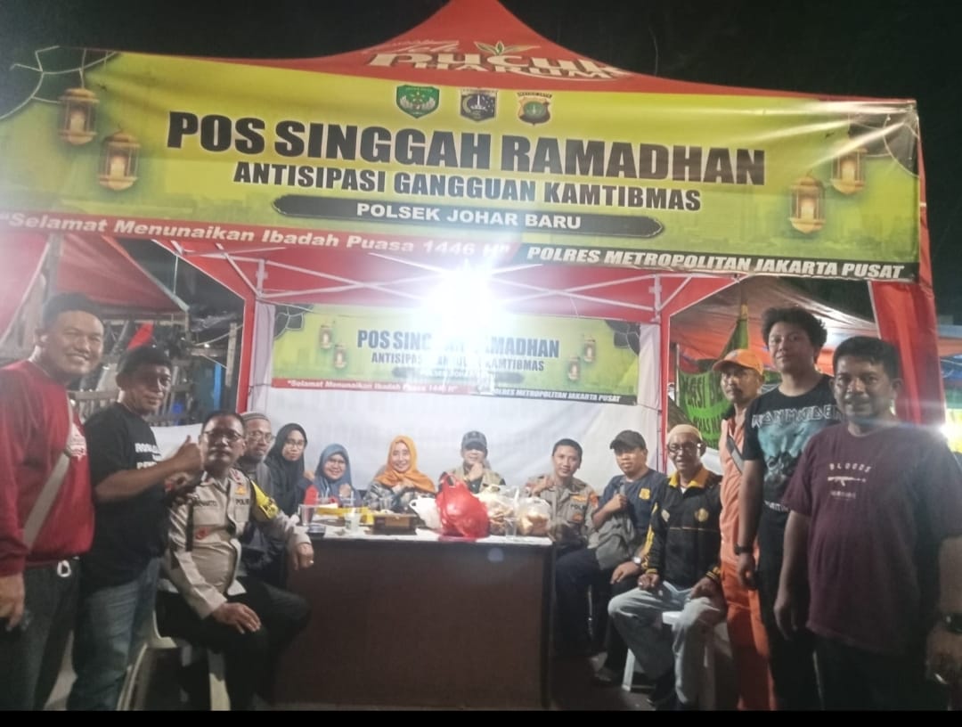 drtikhukum.id, – Jakarta Pusat – Dalam rangka menciptakan suasana yang aman dan nyaman bagi umat Islam yang sedang menjalankan ibadah puasa, Bhabinkamtibmas Johar Baru Aiptu Sunarto, bersama dengan anggota Binmas Bripka Tangguh, Bripka Ripto, Bripda Faraz dan tokoh masyarakat setempat, melaksanakan kegiatan pemantauan dan penguatan keamanan di Pos Singgah Ramadhan 1446 H Jothet. Jalan Kramat Jaya Baru RW 10 Kelurahan Johar Baru, Kecamatan Johar Baru Jakarta Pusat. Kamis (06/03/2025).