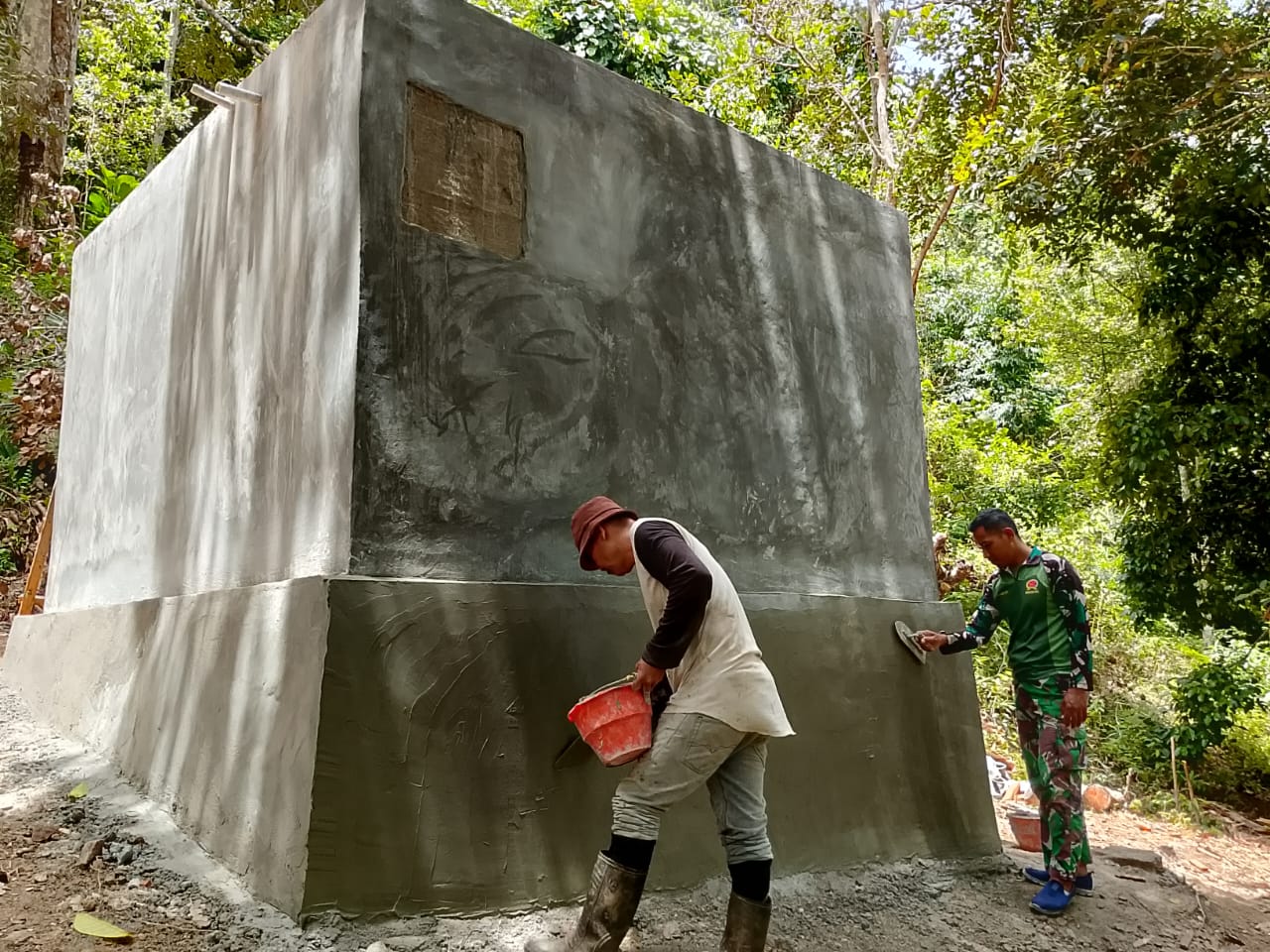 detikhukum.id,- Sanana – Pembuatan bak penampungan air yang menjadi salah satu program sasaran fisik TMMD ke-123 Kodim 1510/Sula kini telah memasuki tahap akhir. Terlihat anggota Satgas TMMD tengah menghaluskan plester pada bagian dinding bak untuk memastikan hasil yang rapi dan kokoh. Proses plester ini dilakukan guna memperkuat struktur bak agar lebih tahan lama dan mencegah kebocoran. Minggu (09/03/2025).