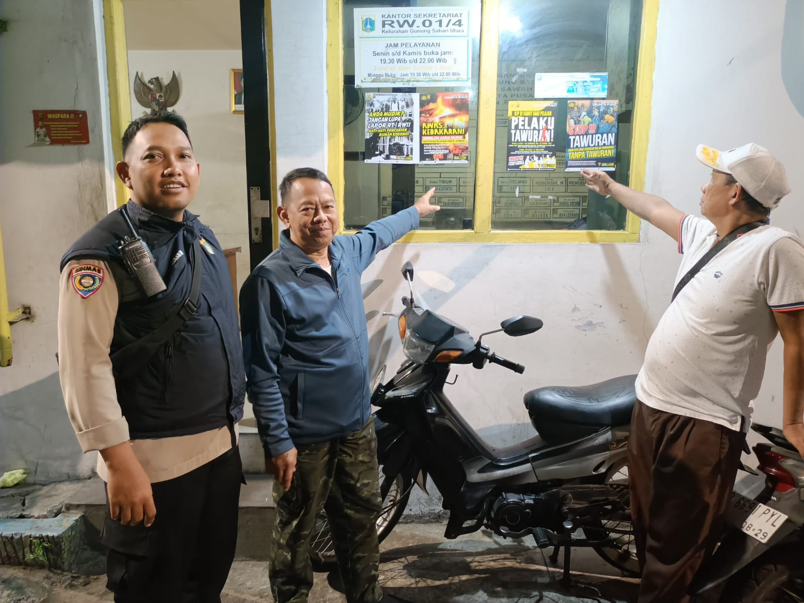 detikhukum.id, – Jakarta Pusat – Dalam upaya meningkatkan kesadaran warga terhadap keamanan lingkungan selama musim mudik Lebaran, Bhabinkamtibmas Kelurahan GunungbSahari Utara, Polsek Sawah Besar, Aipda Adnan Munandar melaksanakan pemasangan stiker himbauan di beberapa titik strategis di wilayah Pos RW 01 dan Pos RW 05, Kelurahan Gunung Sahari Utara, Kecamatan Sawah Besar, Jakarta Pusat, pada Senin dini hari (17/3/2025).