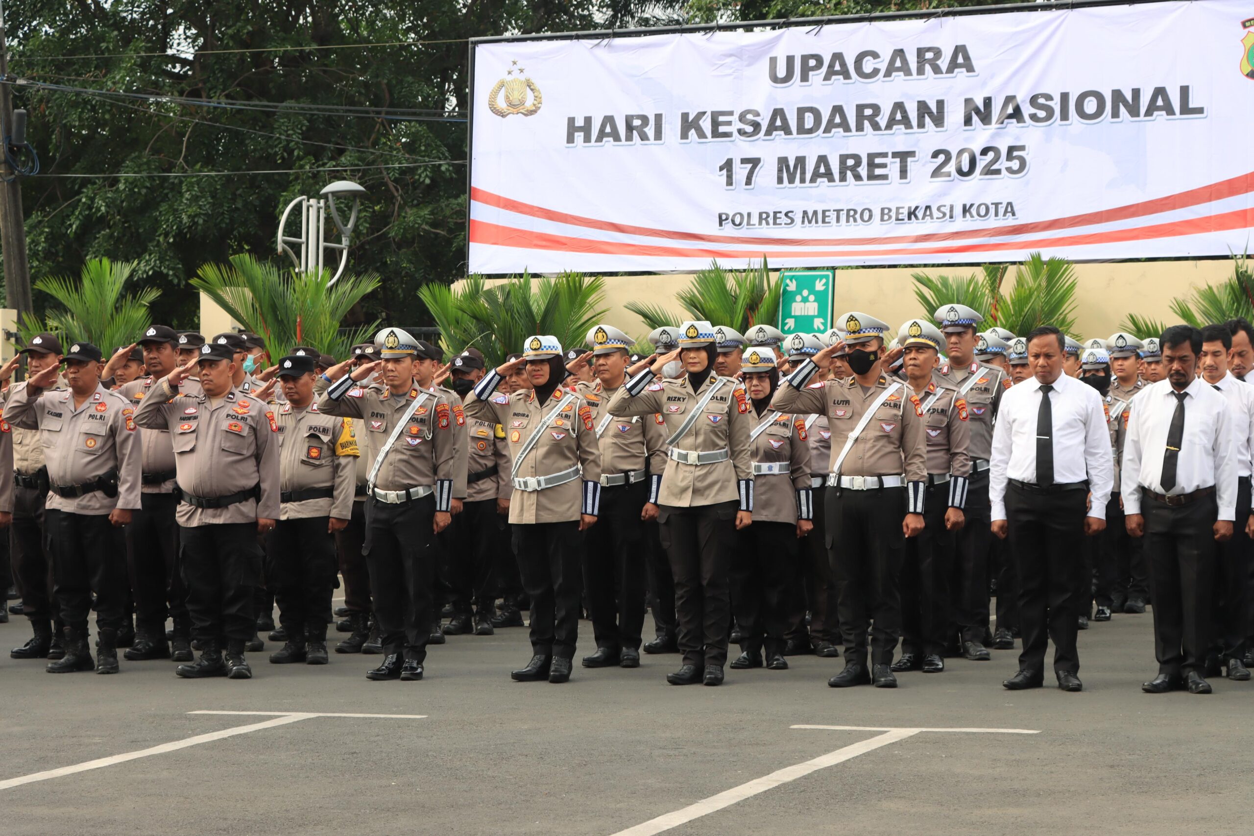 Upacara ini diikuti oleh para Pejabat Utama (PJU) Polres Metro Bekasi Kota, para Kapolsek jajaran, serta perwakilan anggota dan PNS dari masing-masing polsek. Rangkaian upacara berjalan khidmat dengan menyanyikan Mars Polri, penghormatan pasukan, pengibaran bendera Merah Putih, mengheningkan cipta, pembacaan teks Pancasila, pengucapan Tribrata, dan Panca Prasetya Korpri.