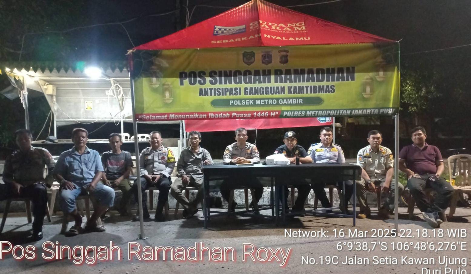detikhukum.id, – Jakarta Pusat – Dalam upaya menjaga situasi tetap aman dan kondusif selama bulan suci Ramadhan, Polsek Metro Gambir bersama elemen masyarakat menggelar patroli dan pengamanan di Pos Singgah Ramadhan Roxy, Jl. Baru RT 10 RW 12, Kelurahan Duripulo, Gambir, Jakarta Pusat, pada Senin (17/3/2025).