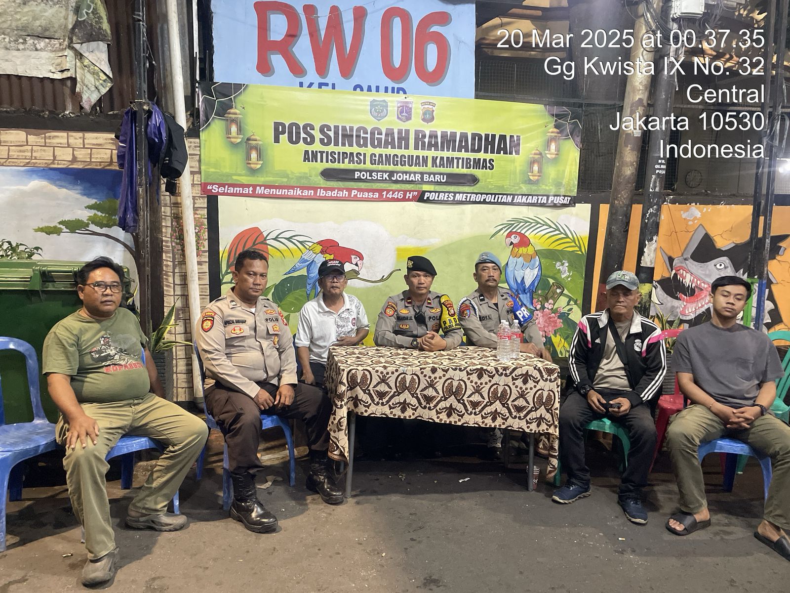 Pada pukul 02.30 WIB, Padal Polsek Johar Baru beserta piket fungsi melakukan pengecekan di setiap pos singgah Ramadhan yang tersebar di wilayah Johar Baru. Hasil pengecekan menunjukkan bahwa seluruh anggota jaga dan tiga pilar telah menempati pos masing-masing dengan baik.