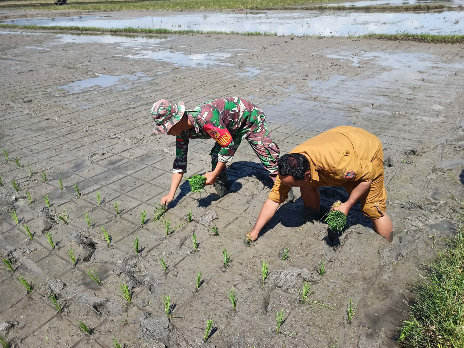 Tak Hanya Melakukan Pendampingan, Babinsa Ikut Serta dalam Kegiatan Hambur Tanam Kelompok Tani