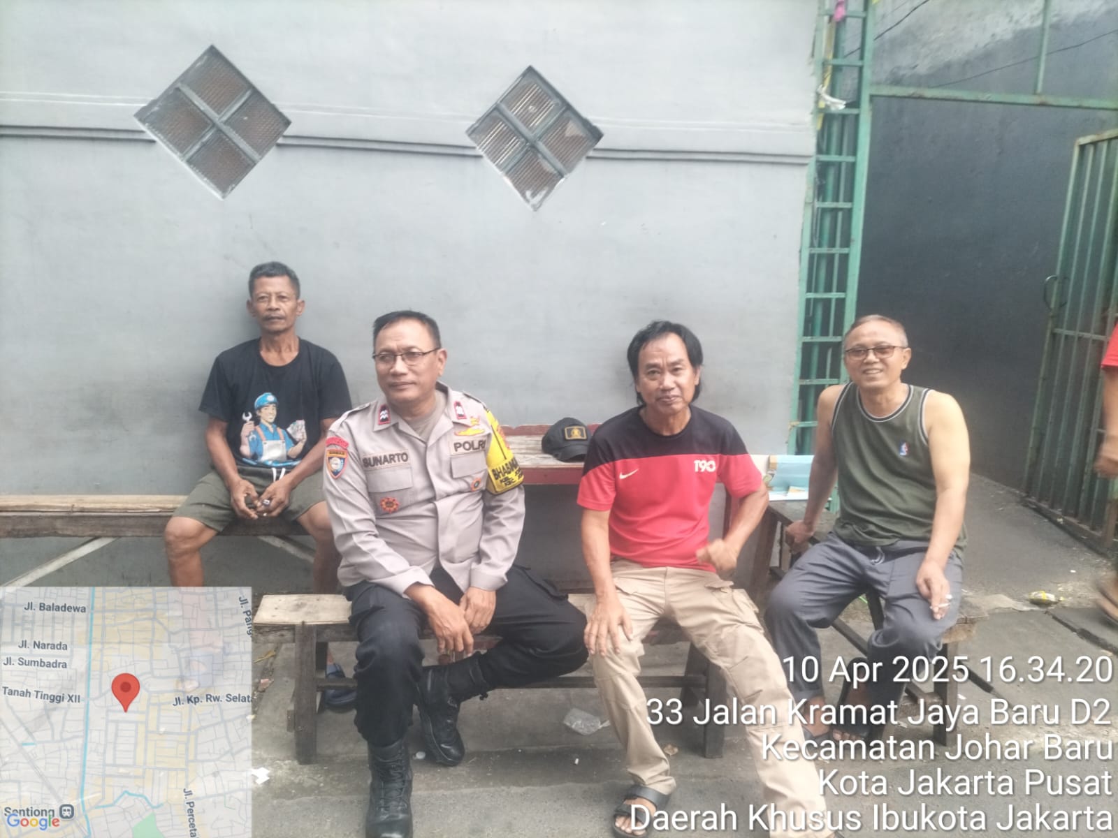detikhukum.id, || Jakarta Pusat, 10 April 2025 – Dalam rangka menjaga keamanan dan ketertiban masyarakat, Kepolisian Sektor Johar Baru melaksanakan kegiatan patroli dialogis dan sambang warga pada Kamis malam, 10 April 2025, yang dimulai pukul 16.50 WIB di RW 02 Kelurahan Johar Baru, Kecamatan Johar Baru, Jakarta Pusat. Kegiatan ini dipimpin oleh Aiptu Sunarto, Bhabinkamtibmas Kelurahan Johar Baru, dengan tujuan untuk meningkatkan kerjasama antara pihak kepolisian dan masyarakat dalam menjaga situasi kamtibmas yang aman dan kondusif.