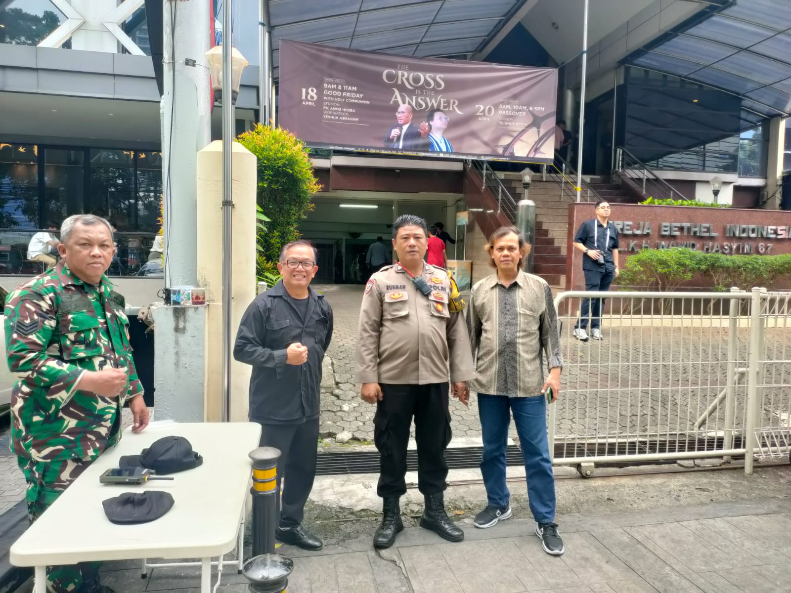 detikhukum.id, || Jakarta Pusat – Kepolisian Resor Metropolitan Jakarta Pusat memastikan keamanan maksimal pada kebaktian Misa Ibadah Jum’at Agung di Gereja Bethel Indonesia, Menteng, Jakarta Pusat. Sebanyak 15 personel gabungan dari Polsek, Bhabinkamtibmas, Babinsa, dan aparat keamanan lainnya dikerahkan untuk menjaga kelancaran ibadah yang dihadiri lebih dari 350 jemaat.