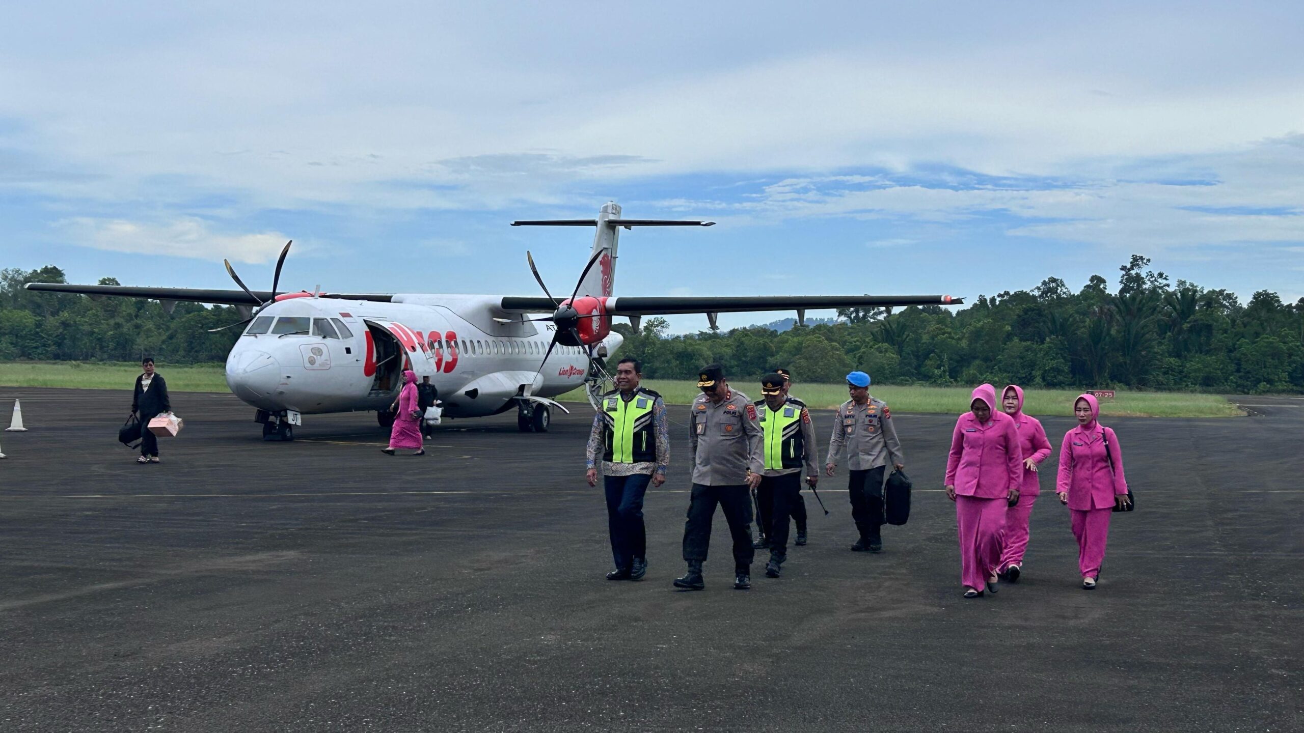 detikhukum.id, || TNI AL, Simeulue,- Bertempat di Bandar Udara Lasikin, Kecamatan Teupah Tengah, Komandan Pangkalan TNI AL Simeulue Letkol Laut (P) Oyu Mulia Sukmana S.T., M.T., M.Tr.Opsla., didampingi Ketua Jalasenastri Cabang 8 Korcab l DJA l Ny. Meylina Oyu Mulia sambut Kunjungan Kerja Kapolda Aceh Irjen Pol. Dr. Achmad Kartiko, S.I.K., M.H., dan Ny. Maharani Wisnurizma Kartiko beserta rombongan di Kabupaten Simeulue, Sabtu (19/4/2025).