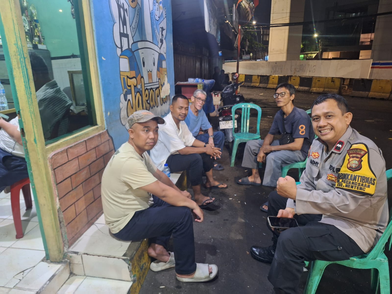 detikhukum.id, || Jakarta Pusat – Dalam rangka menjaga situasi kamtibmas yang aman dan kondusif di wilayah binaan, Bhabinkamtibmas Kelurahan Pegangsaan, Aipda H. M. Adhy M.N, melaksanakan kegiatan sambang dan patroli dialogis bersama warga di Pos Keamanan RW 06 Tambak Ujung, Kelurahan Pegangsaan, Kecamatan Menteng, Jakarta Pusat, pada Minggu malam (20/4/2025).