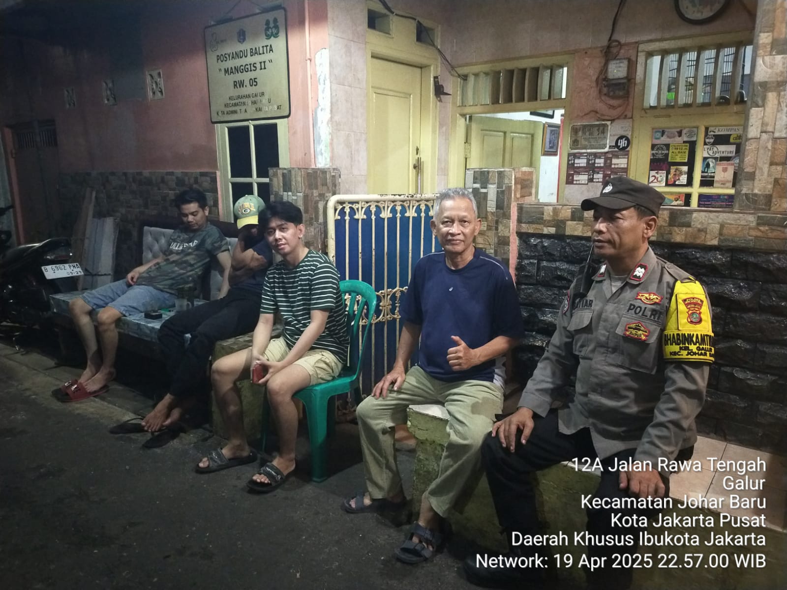 detikhukum.id, || Jakarta Pusat – Pada hari Sabtu malam, tanggal 19 April 2025, sekitar pukul 23.00 WIB, kegiatan patroli dan sambang dilakukan oleh Bhabinkamtibmas Kelurahan Galur, Aiptu Baktiar Emri. Bertempat di Jalan Rawa Tengah, RT 07 RW 05, Kelurahan Galur, Kecamatan Johar Baru, Jakarta Pusat, kegiatan ini bertujuan untuk memperkuat keamanan dan ketertiban masyarakat (Kamtibmas) di wilayah tersebut.