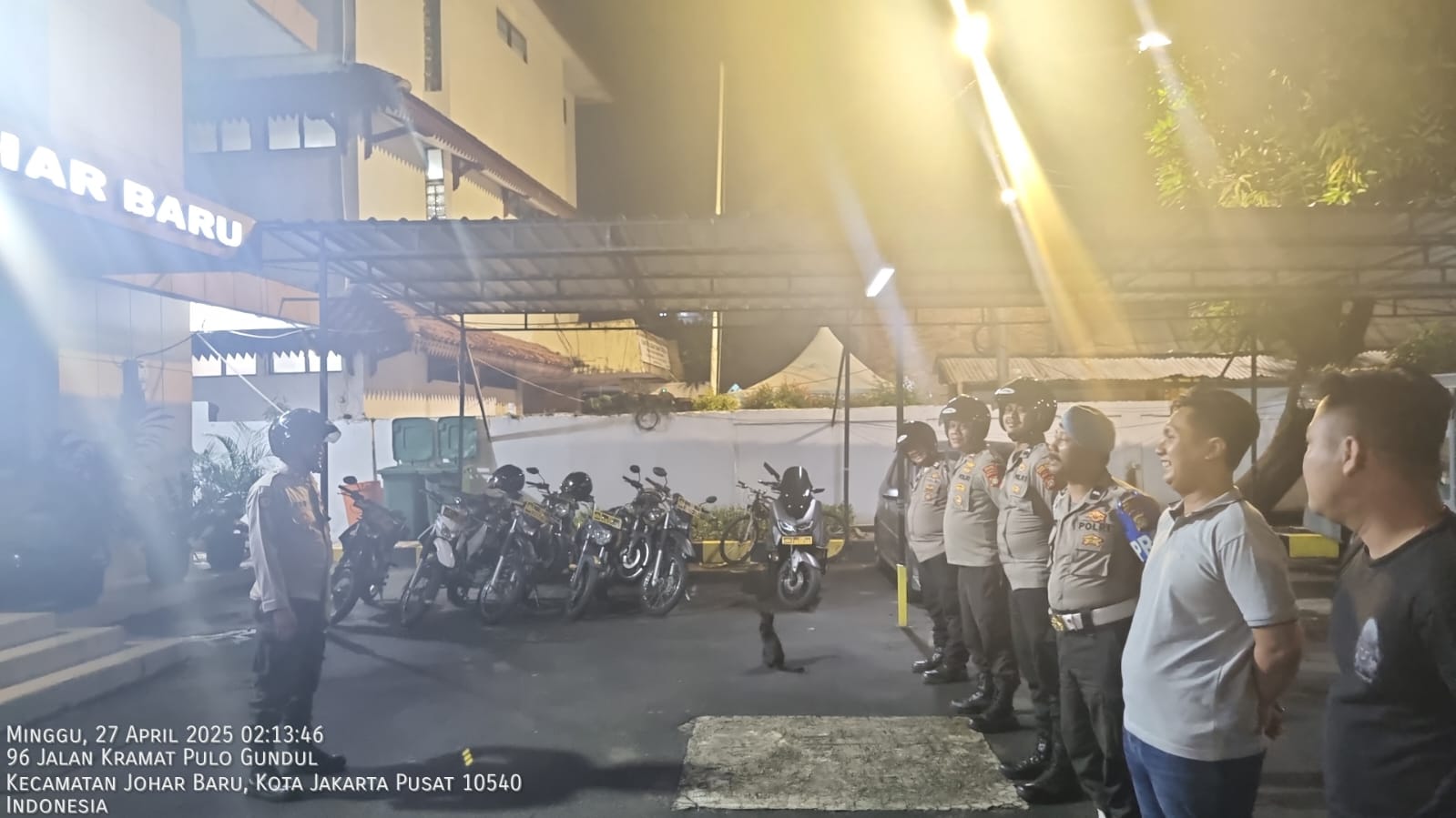 detikhukum.id, || Jakarta Pusat – 27 April 2025 – Polsek Johar Baru menggelar Apel Patroli Cipta Kondisi untuk mengantisipasi gangguan keamanan dan ketertiban masyarakat (Guantibmas) pada Minggu dini hari, pukul 02.02 WIB. Apel ini berlangsung di halaman Polsek Johar Baru dan dipimpin langsung oleh Aiptu Eko Parwanto, Panit III Samapta. Kegiatan ini melibatkan 10 anggota dari Polsek Johar Baru.