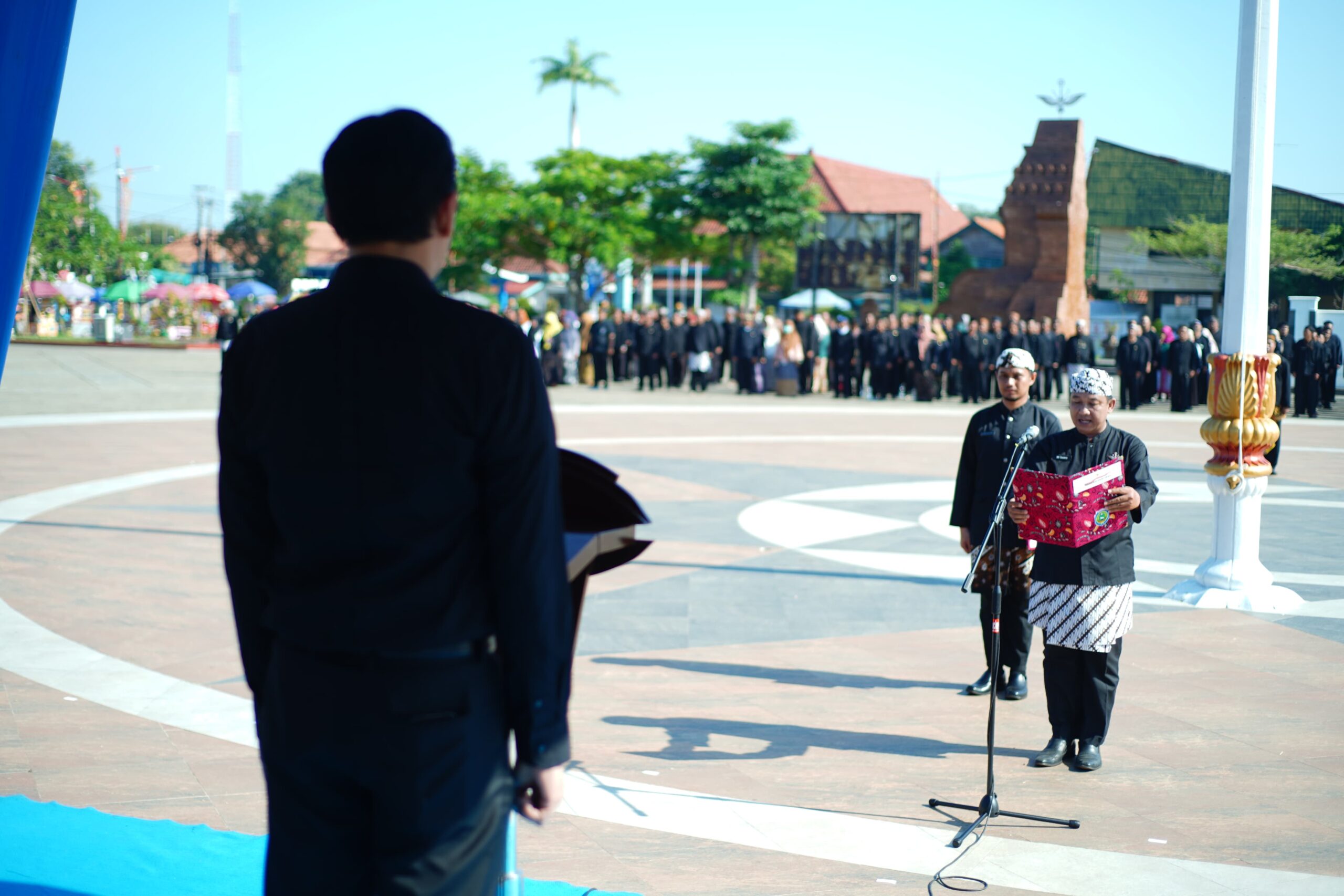 Dipimpin langsung oleh Bupati Indramayu, Lucky Hakim, selaku Inspektur Upacara, acara ini dihadiri Wakil Bupati Syaefudin, Pimpinan DPRD Kabupaten Indramayu, Forkopimda Kabupaten Indramayu serta diikuti jajaran Aparatur Sipil Negara (ASN), serta ratusan pelajar yang mengenakan pakaian adat Indramayu.