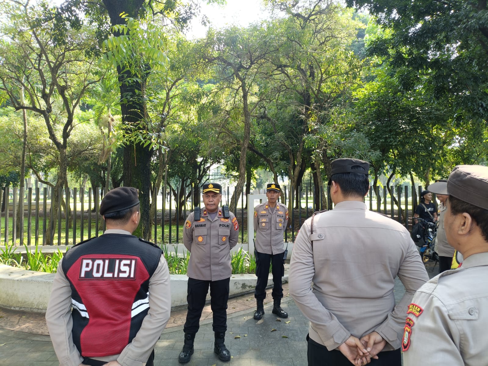 Di lapangan, pengamanan dipimpin oleh Kanit Samapta Polsek Sawah Besar, IPTU A. Abdillah, yang turut memastikan situasi tetap kondusif. Kegiatan apel ditutup dengan doa bersama agar seluruh rangkaian pengamanan berjalan aman, lancar, dan terkendali.