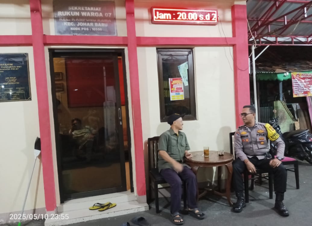 detikhukum.id, || Jakarta Pusat – Komitmen untuk menjaga keamanan lingkungan terus digalakkan oleh jajaran Polsek Johar Baru. Sabtu malam (10/5/2025) pukul 23.40 WIB, Bhabinkamtibmas Kelurahan Kampung Rawa, Aipda Ikhwan Mulyadi, melaksanakan kegiatan sambang ke Pos Satkamling RW 07 yang berlokasi di Jalan Rawa Selatan 5 Gang Buntu, Kelurahan Kampung Rawa, Jakarta Pusat.