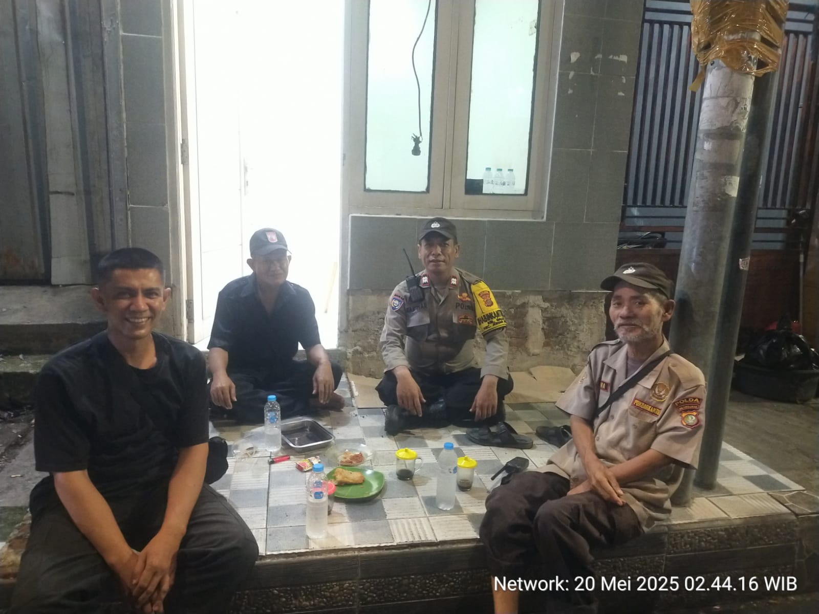 Kehadiran Aiptu Baktiar disambut oleh petugas Hansip, Bapak Syahri dan Bapak Soma, serta Ketua RT 015/01, Bapak Irfan. Dalam pertemuan itu, mereka berdiskusi santai tentang potensi gangguan keamanan dan upaya bersama dalam menjaga lingkungan, seperti pencegahan curanmor dan tindak kejahatan lainnya.