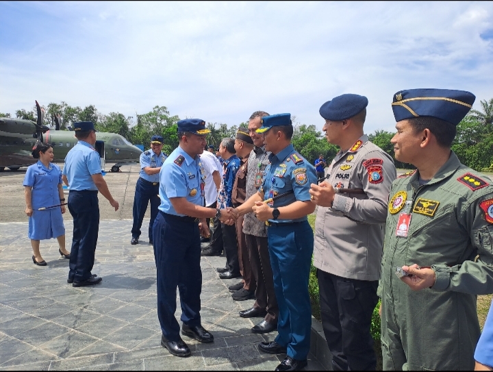 Acara penyambutan yang berlangsung di VIP Room Pandawa Lanud Roesmin Nurjadin Pekanbaru dipimpin oleh Komandan Lanud Roesmin Nurjadin Marsma TNI Abdul Haris, M.Mpol., M.M.O.A.S.