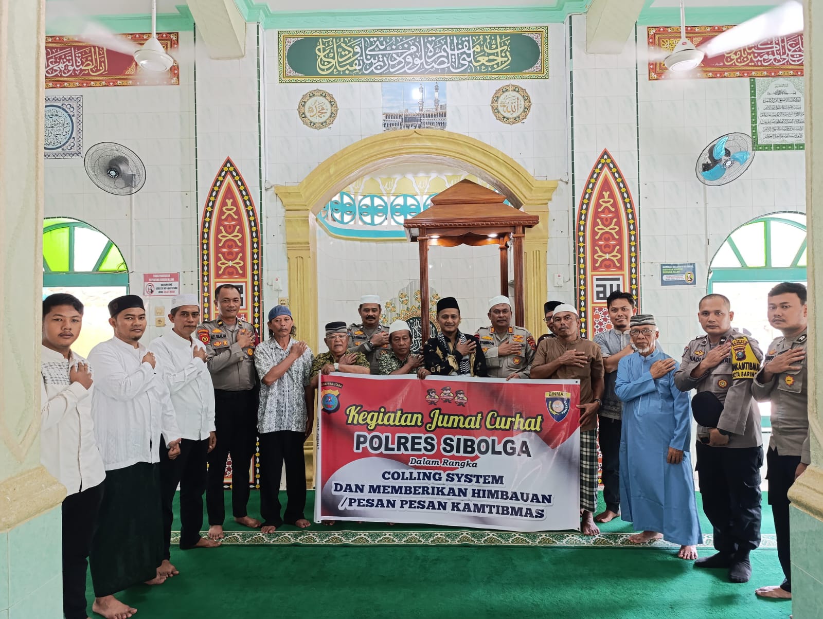 detikhukum.id || SIBOLGA – Kapolres Sibolga AKBP Eddy Inganta, SH, SIK, MH, diwakili Kasat Polairud Polres Sibolga AKP Syahrizal bersama KBO Sat Samapta Polres Sibolga IPDA HE. Silalahi, melaksanakan kegiatan Jumat Curhat yang dilaksanakan di Masjid Al-Munawar Sibolga, Jalan Tapian Kelurahan Huta Tonga-Tonga Kecamatan Sibolga Utara Kota Sibolga, Jumat (23/05/2025).