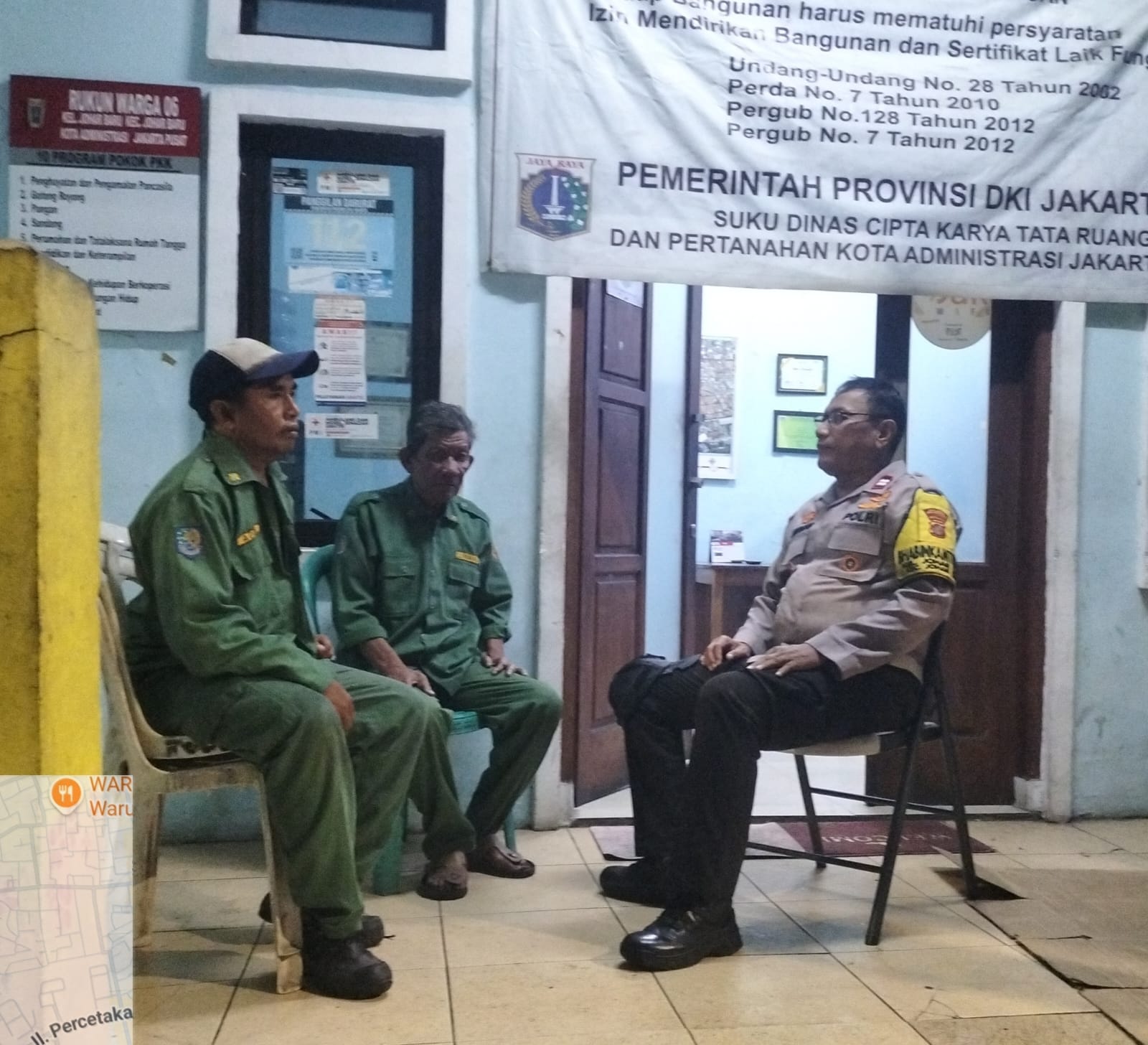 detikhukum.id, || Jakarta Pusat — Dalam rangka menjaga keamanan dan ketertiban lingkungan, Bhabinkamtibmas Kelurahan Johar Baru, Aiptu Sunarto, melakukan sambang dan cooling system di Poskamling RW 06, Jalan Percetakan Negara II, Kelurahan Johar Baru, Jakarta Pusat, pada Kamis malam, 29 Mei 2025, pukul 23.00 WIB.