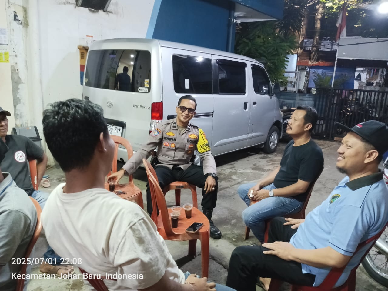 detikhukum.id, || Jakarta Pusat – Untuk menciptakan situasi wilayah yang aman dan kondusif, jajaran Polsek Johar Baru terus menggencarkan patroli sambang ke wilayah padat penduduk guna memastikan keamanan tetap kondusif. Salah satu kegiatan tersebut dilakukan oleh Bhabinkamtibmas Kelurahan Kampung Rawa, Aipda Ikhwan Mulyadi, yang menyambangi Sekretariat RW 02, Jalan Rawa Sawah 4, Kelurahan Kampung Rawa, Kecamatan Johar Baru, Jakarta Pusat, pada Selasa malam (1/7/2025) pukul 22.20 WIB.