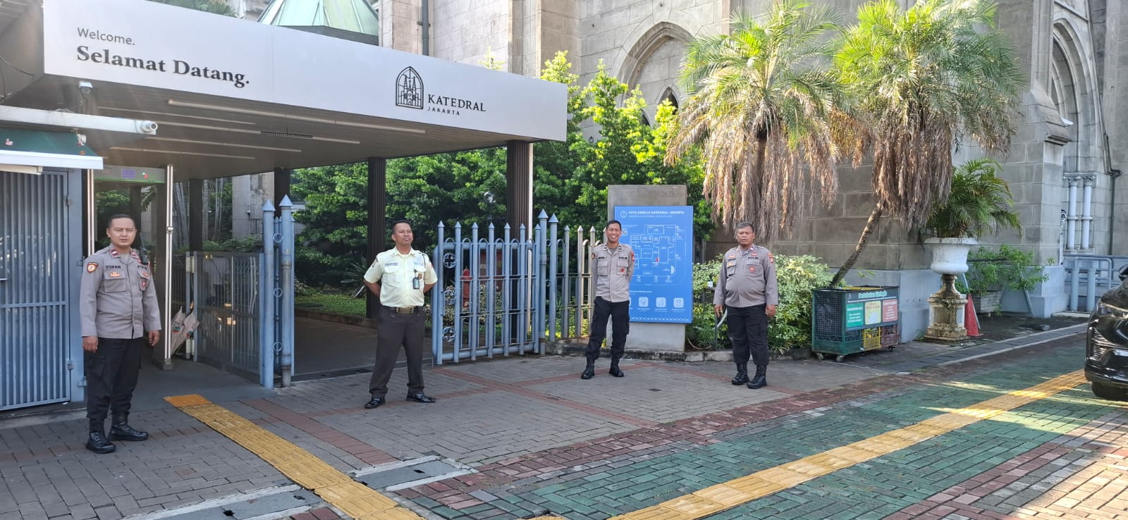 Pengamanan dilakukan dengan berkoordinasi bersama tim keamanan internal gereja. Hal ini dilakukan untuk mengantisipasi potensi gangguan keamanan, seperti kemacetan lalu lintas, tindakan kriminal, hingga ancaman lainnya yang dapat mengganggu jalannya ibadah.