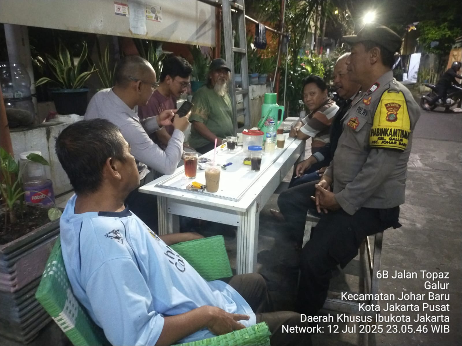 detikhukum.id, || Jakarta Pusat – Polres Metro Jakarta Pusat melalui Bhabinkamtibmas Kelurahan Galur melaksanakan patroli dan sambang pada Sabtu (12/7/2025) pukul 23.30 WIB di Jl. Topaz RT 005/02 Kelurahan Galur, Johar Baru, Jakarta Pusat.