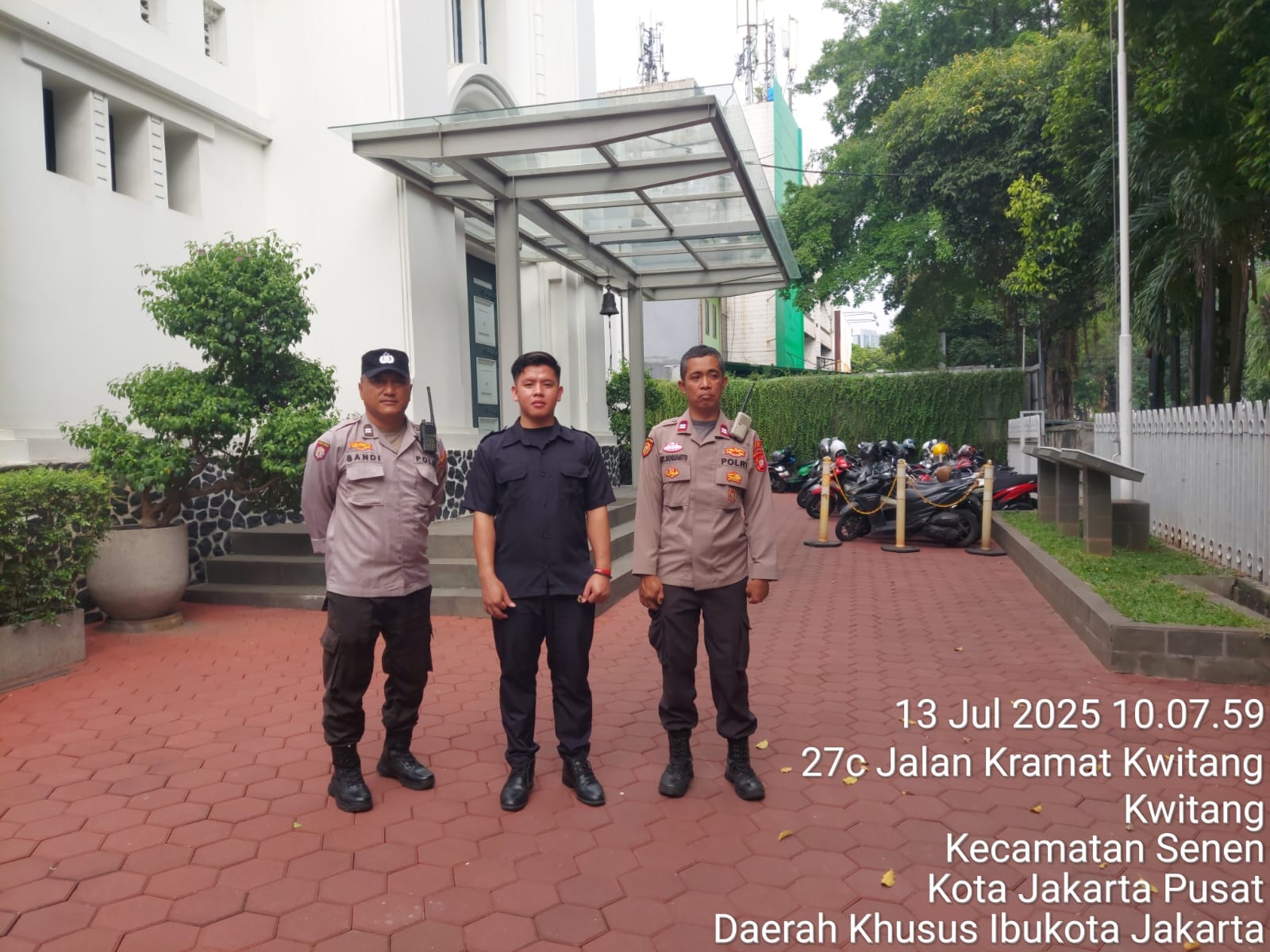 detikhukum.id, || Jakarta Pusat – Dalam upaya menjaga keamanan dan ketertiban masyarakat (Kamtibmas) serta memberikan rasa aman kepada jemaat yang sedang menjalankan ibadah, Unit Samapta Polsek Senen melaksanakan patroli mobile di sekitar Gereja GKI Kwitang, Kecamatan Senen, Jakarta Pusat, pada Minggu (13/7/2025) pukul 10.00 WIB.