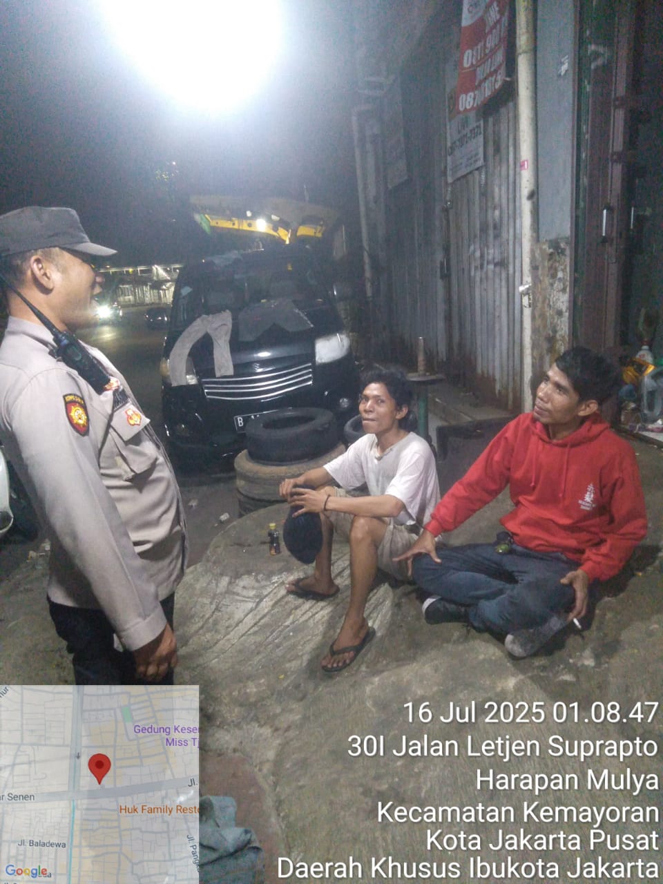 detikhukum.id, || Jakarta Pusat — Dalam rangka menciptakan rasa aman dan menjaga kondusivitas lingkungan, Kapolsubsektor Galur Aiptu Zulfikar Hasibuan melaksanakan patroli dialogis pada Rabu dini hari, 16 Juli 2025, pukul 01.10 WIB, di Jl. Letjen Suprapto RT 001 RW 003, Kelurahan Galur, Kecamatan Johar Baru, Jakarta Pusat.