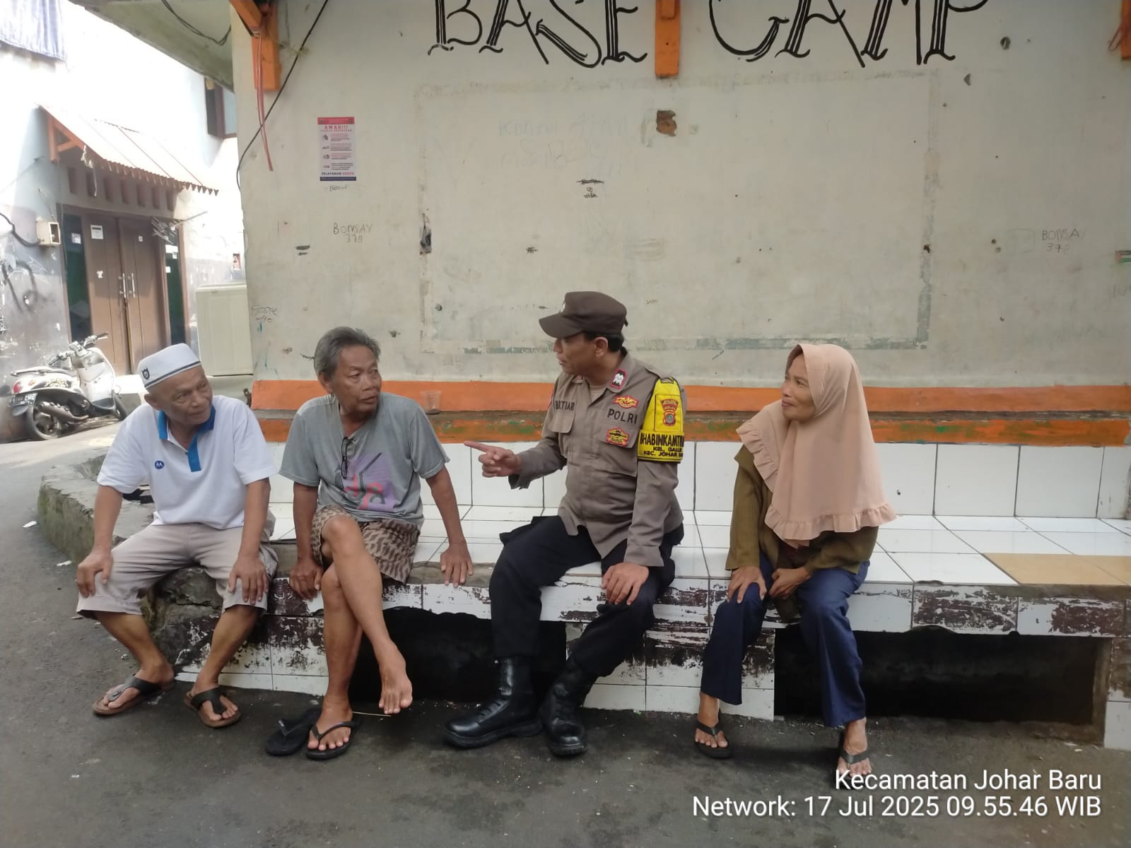 detikhukum.id, || Jakarta Pusat – Upaya memperkuat sinergi antara kepolisian dan masyarakat terus digalakkan oleh jajaran Polsek Johar Baru. Salah satunya dilakukan oleh Bhabinkamtibmas Kelurahan Galur, Aiptu Baktiar, yang pada Kamis (17/7/2025) pukul 14.00 WIB melaksanakan kegiatan sambang dan cooling system di Jl. Rawa Tengah RT 012 RW 05, Kelurahan Galur, Johar Baru, Jakarta Pusat.