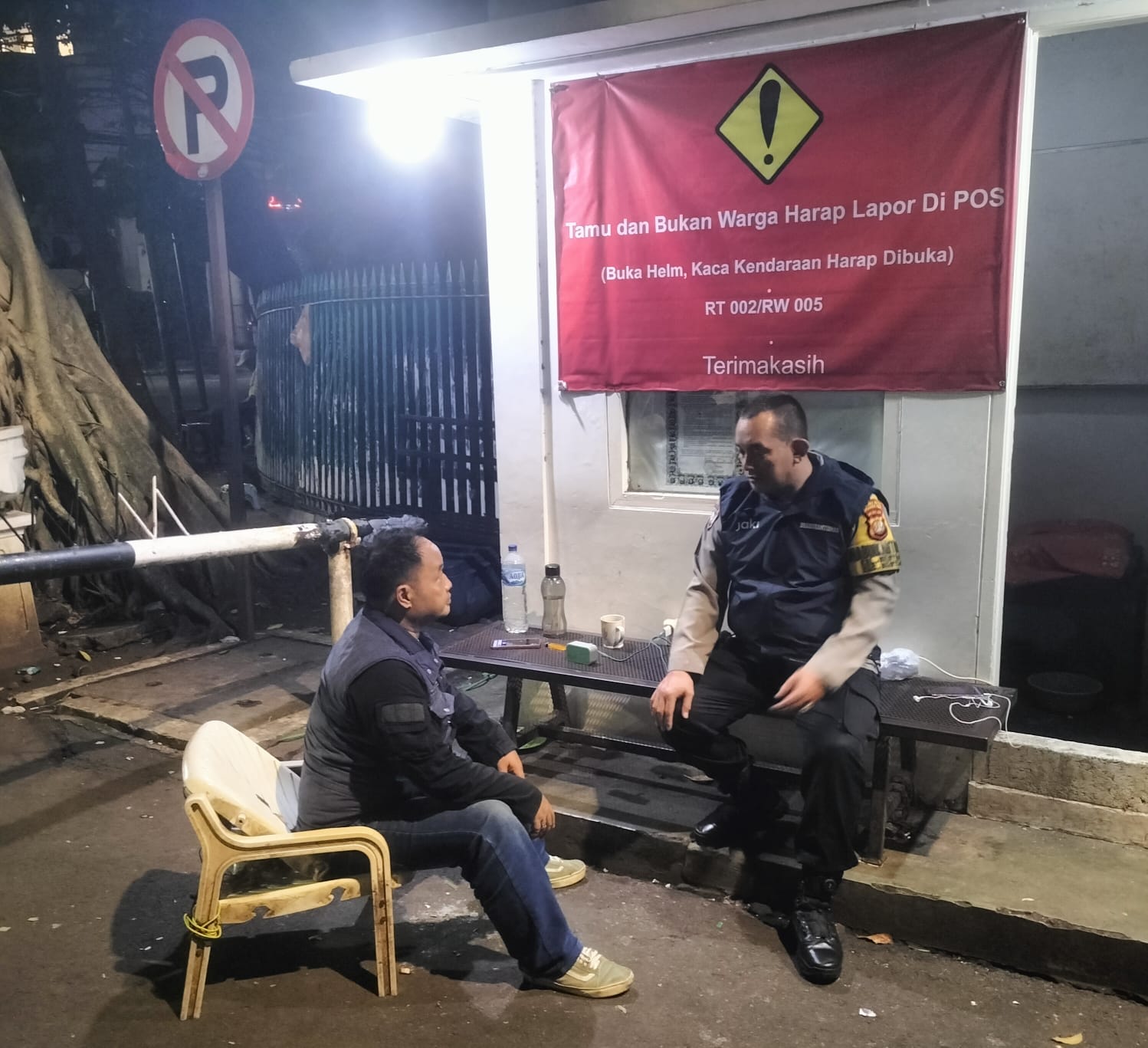Melalui dialog santai namun serius, Aiptu Robby menyampaikan sejumlah imbauan kamtibmas, salah satunya agar petugas satkamling dan warga selalu meningkatkan kewaspadaan terhadap aktivitas keluar-masuk lingkungan, khususnya melalui akses portal.