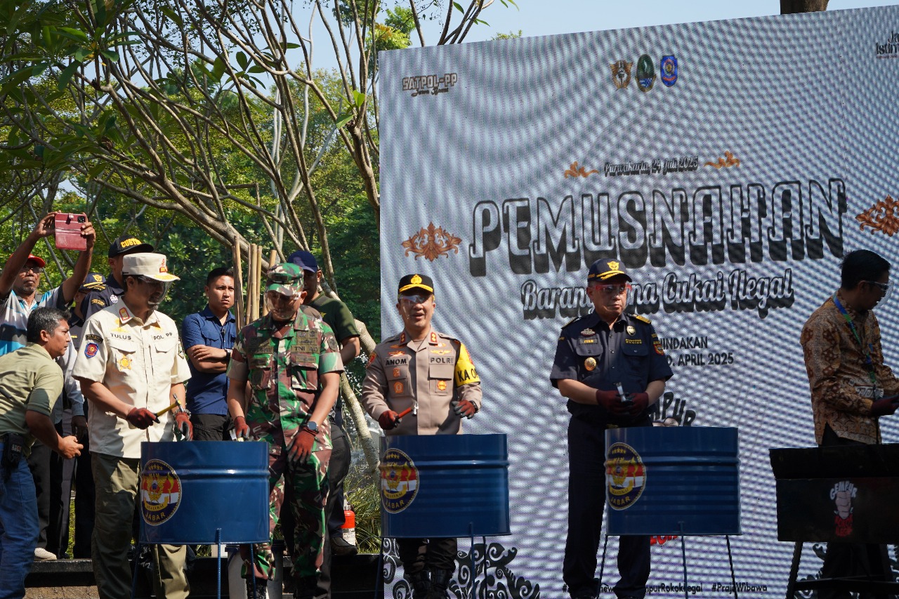 Kegiatan ini merupakan bentuk nyata komitmen bersama dalam pemberantasan barang ilegal, seperti rokok tanpa pita cukai, minuman beralkohol ilegal, serta barang-barang hasil tembakau lainnya yang melanggar ketentuan perundang-undangan.