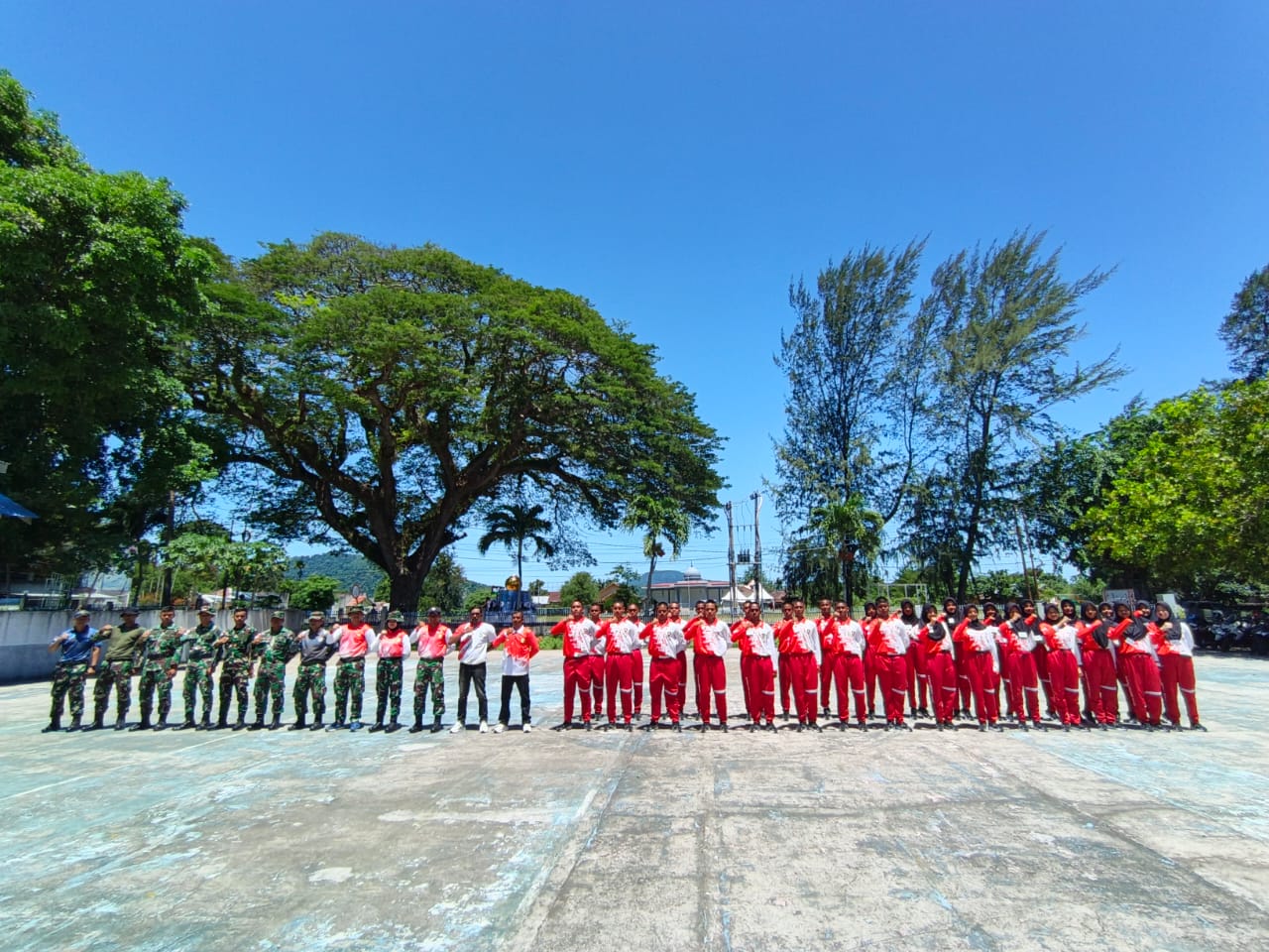 Komandan Posal Sukakarya Letda Laut (P) Heri Firmansyah Hidayat bersama Personel Lanal Sabang yang mendapat surat perintah melaksanakan pelatihan mulai tahap seleksi, materi dan praktek PBB sampai dengan program formasi yang akan dilaksanakan pada saat Upacara Peringatan HUT Kemerdekaan Republik Indonesia yang diikuti siswa/i dari beberapa sekolah tingkat SMA se-Kota Sabang yang dilaksanakan di Lapangan Tenis Lanal Sabang.