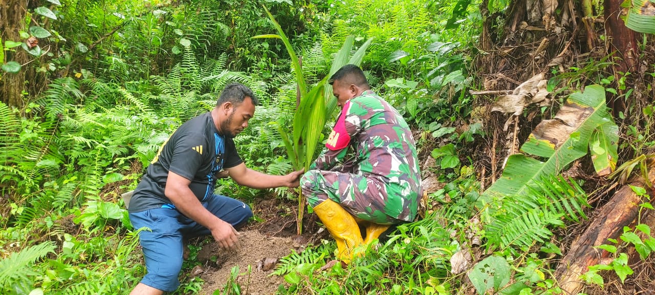 refubliknews.com, || Buru Selatan – Selain sasaran fisik berupa pembangunan infrastruktur, Satgas TMMD Kodim 1506/Namlea juga mengerjakan sasaran non fisik yakni penanaman 10.000 bibit pohon keras. Setelah pembukaan TMMD Satuan Tugas Kodim 1506/Namlea secara serentak, di tempat terpisah telah menanam bibit pohon keras seperti Trambsesi serta Mahoni dan pohon berbuah seperti Rambutan dan Durian sebanyak 350 pohon. Bibit di tanam secara tersebar dibeberapa kecamatan, yakni Kecamatan Namrole 50 pohon, Waesama 250 pohon dan Fenafafan sebanyak 100 pohon.