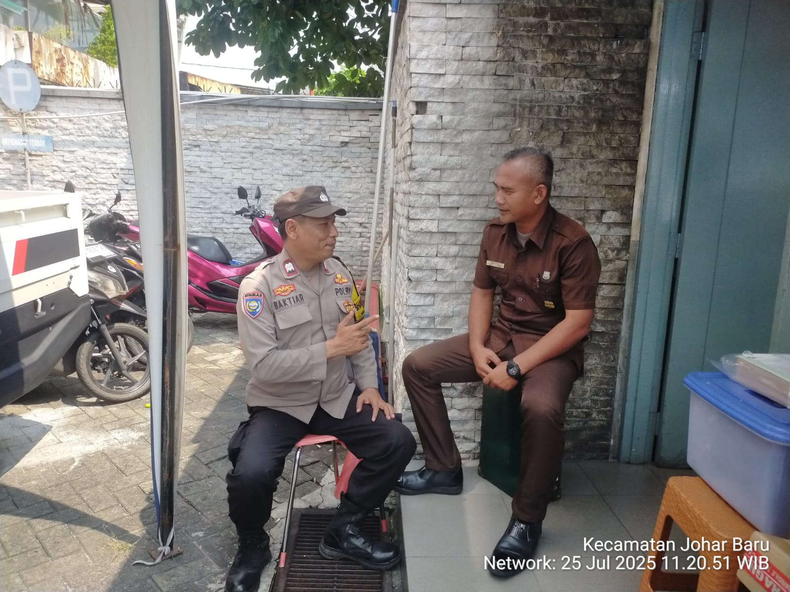 detikhukum.id, || Jakarta Pusat – Dalam upaya menjaga keamanan dan ketertiban masyarakat (kamtibmas) di wilayah hukum Polsek Johar Baru, Bhabinkamtibmas Kelurahan Galur, Aiptu Baktiar Emri, melaksanakan kegiatan sambang dan cooling system di lingkungan PT Toyota Auto 2000, Jalan Letjen Suprapto RT 02 RW 04, Kelurahan Galur, Kecamatan Johar Baru, Jakarta Pusat, pada Jumat (25/7/2025) pukul 11.30 WIB.