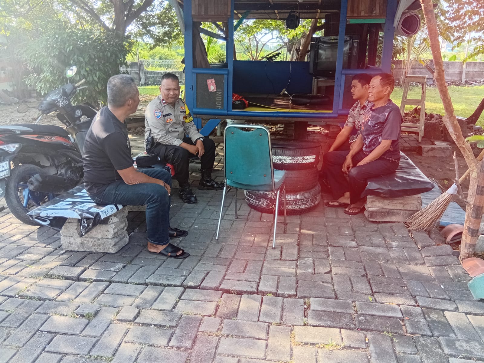 Dalam giat tersebut, Aipda Purwanto menyambangi warga setempat, termasuk berinteraksi langsung dengan Bapak Tono dan Bapak Mustar yang sehari-hari bertugas sebagai petugas keamanan lingkungan. Pertemuan berlangsung akrab dalam suasana santai namun penuh tanggung jawab, dengan fokus pada penyampaian informasi seputar situasi keamanan dan ketertiban masyarakat (kamtibmas) di wilayah tersebut.