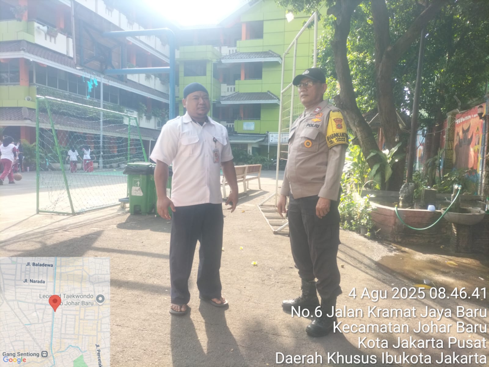 detikhukum.id, || Jakarta Pusat – Guna menjaga keamanan pelajar dan menciptakan lingkungan sekolah yang aman dan kondusif, Aiptu Sunarto, Bhabinkamtibmas Kelurahan Johar Baru, melaksanakan kegiatan sambang dan cooling system di SMK Negeri 31 Jakarta, yang berlokasi di Jl. Kramat Jaya, RW 01, Kelurahan Johar Baru, Jakarta Pusat, pada Senin, 4 Agustus 2025, pukul 10.00 WIB.