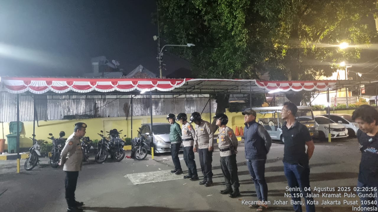 detikhukum.id, || Jakarta Pusat – Dalam rangka meningkatkan kewaspadaan serta mengantisipasi potensi gangguan keamanan dan ketertiban masyarakat (guantibmas), Polsek Johar Baru menggelar Apel Patroli Cipta Kondisi pada Senin, 4 Agustus 2025 pukul 02.05 WIB, bertempat di halaman Mapolsek Johar Baru.