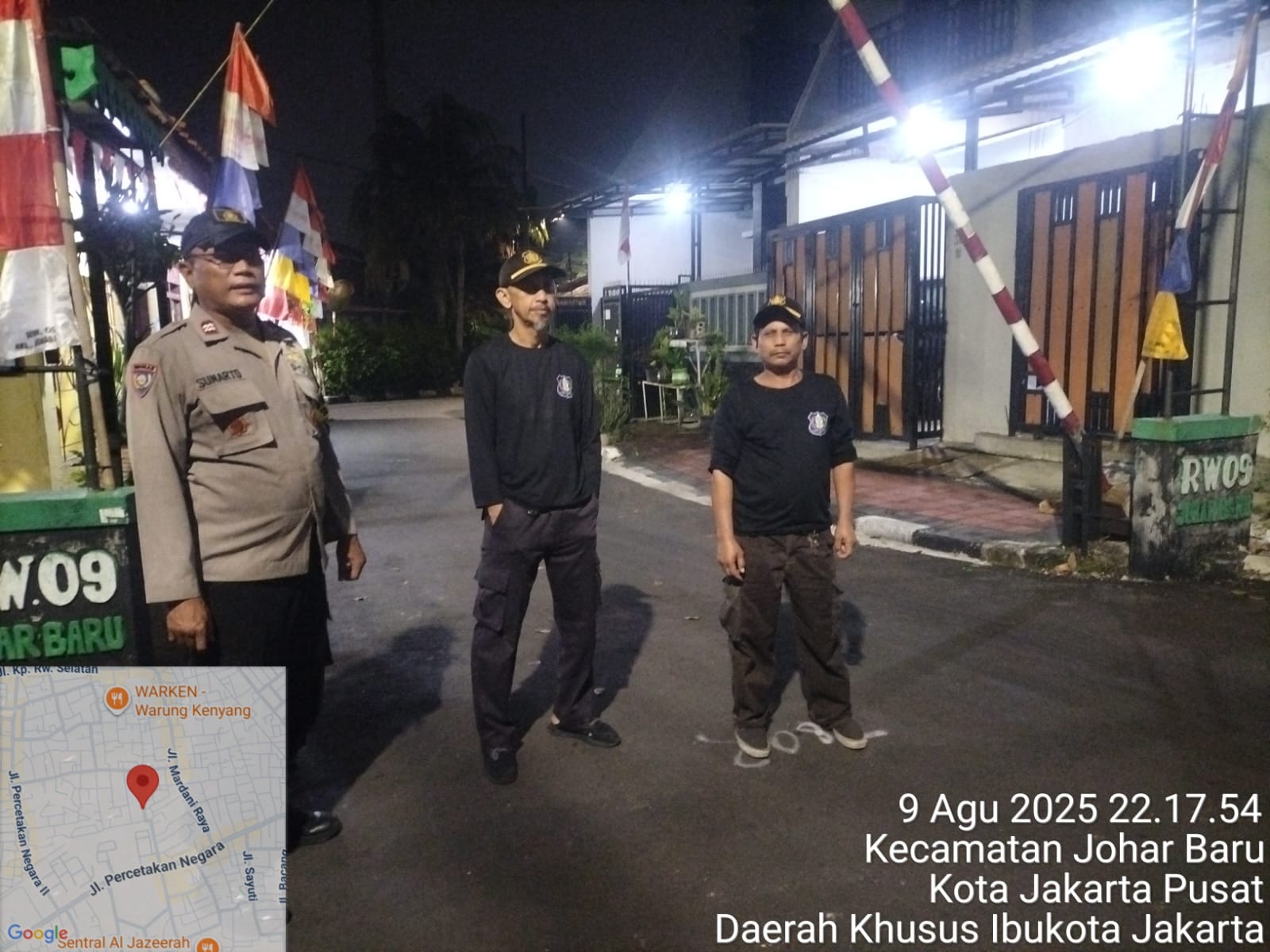 detikhukum.id, || Jakarta Pusat – Dalam upaya menjaga keamanan dan ketertiban lingkungan, Bhabinkamtibmas Kelurahan Johar Baru, Aiptu Sunarto, melaksanakan patroli dialogis dan sambang wilayah di Poskamling RW 09, Jalan Johar Baru I, Kelurahan Johar Baru, Jakarta Pusat, Sabtu (9/8/2025) pukul 23.30 WIB.