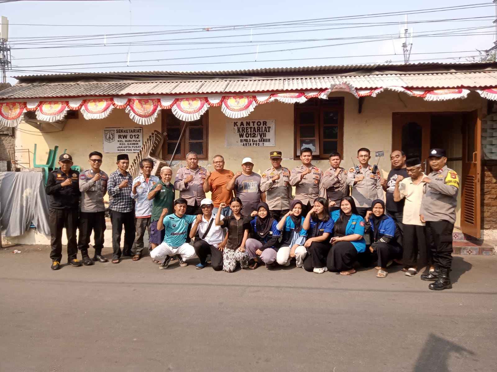 Dalam kegiatan ini, hadir Paurminops Bagbinopsnal Dit Binmas PMJ AKP Toto, Kanit Binmas Polsek Metro Gambir Iptu Supadi, Kasubnit Bintibsos Ipda Kuntrans, Bhabinkamtibmas Kelurahan Duri Pulo Aipda Purwanto, Sekretaris RW 12 Bapak Wahyudi, Ketua RT 08 Bapak Samasi, staf RW 12, serta perwakilan Pokdarkamtibmas. Kehadiran para tokoh masyarakat ini menunjukkan tingginya kepedulian warga terhadap keamanan lingkungan.