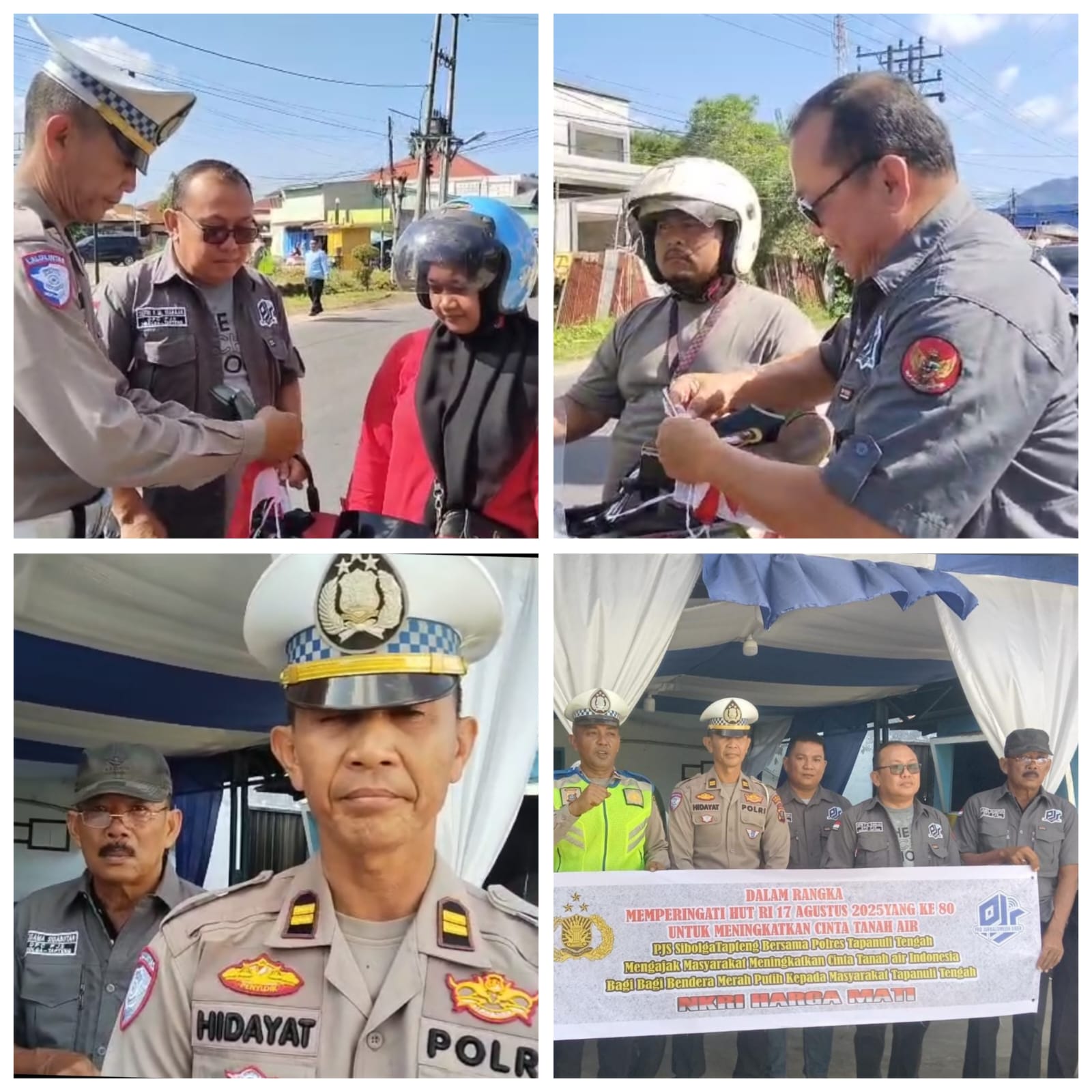 detikhukum.id || Sumatera Utara, Dalam rangka menyemarakkan peringatan Hari Ulang Tahun Kemerdekaan RI ke – 80 tahun 2025, DPC Pro Jurnalis Siber (PJS) Sibolga – Tapanuli Tengah bersama Kepolisian Resort (Polres) Tapanuli Tengah melaksanakan kegiatan gerakan pembagian bendara merah putih kepada masyarakat dan pengguna jalan dalam hal ini pengendara kendaraan bermotor di Pandan – Tapanuli Tengah pada hari Selasa, (12/08/2025) pagi.