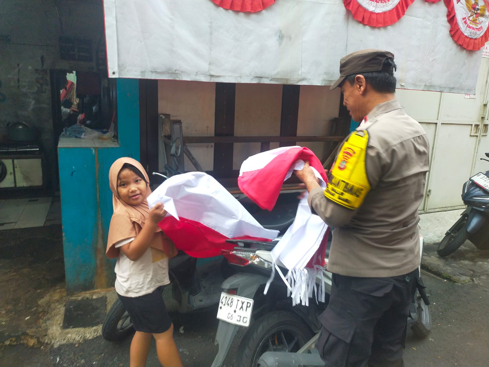 Polsek Johar Baru Bagikan 50 Bendera Merah Putih, Ajak Warga Galur Semarakkan HUT RI ke-80