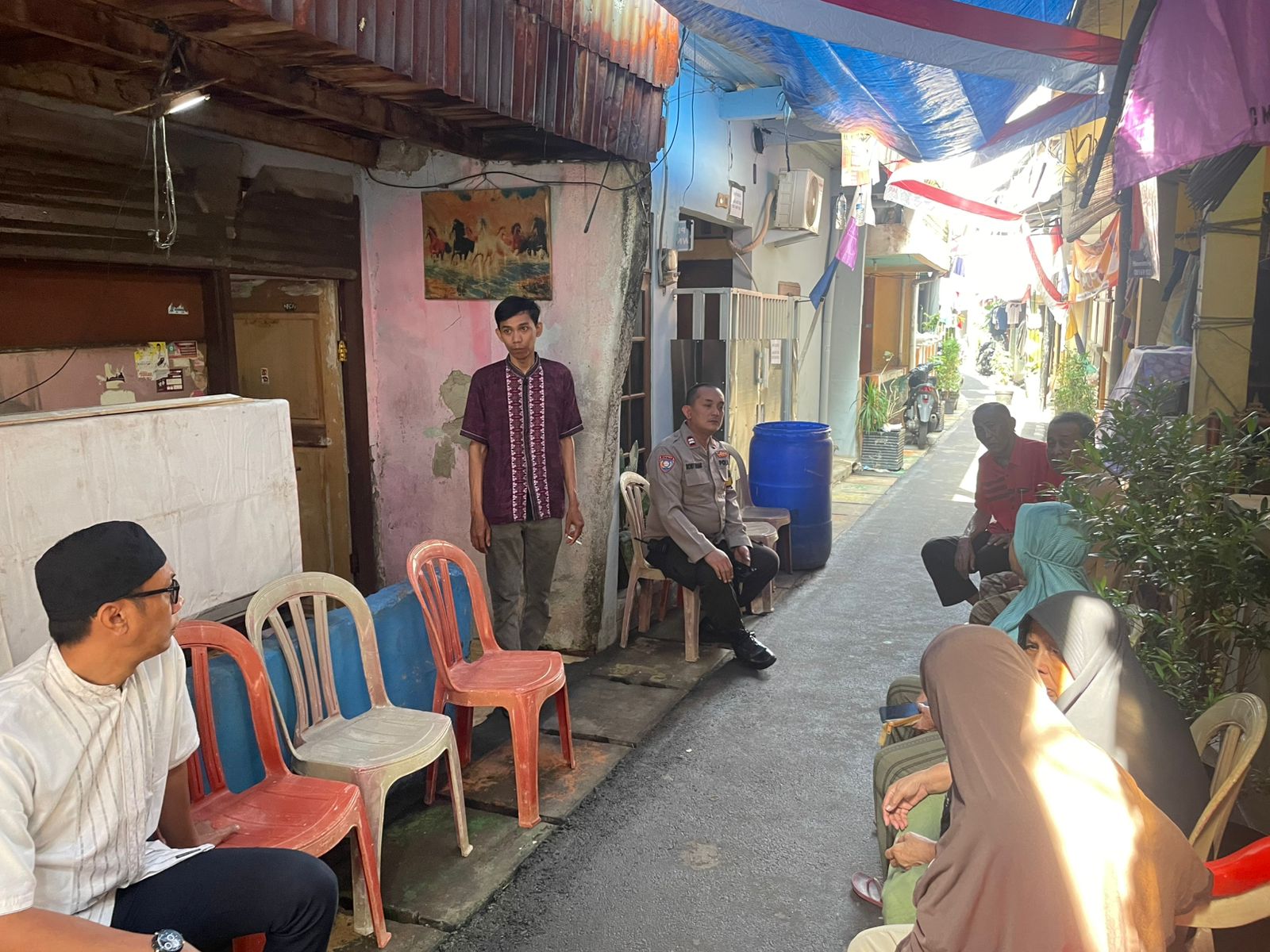 Sebagai bentuk kepedulian dan kedekatan dengan masyarakat binaan, Bhabinkamtibmas Kelurahan Menteng, Aiptu Robby Danan Jaya, hadir dalam giat takziah tersebut. Kehadiran aparat kepolisian di tengah suasana berkabung ini menjadi penguat moral bagi keluarga yang ditinggalkan.