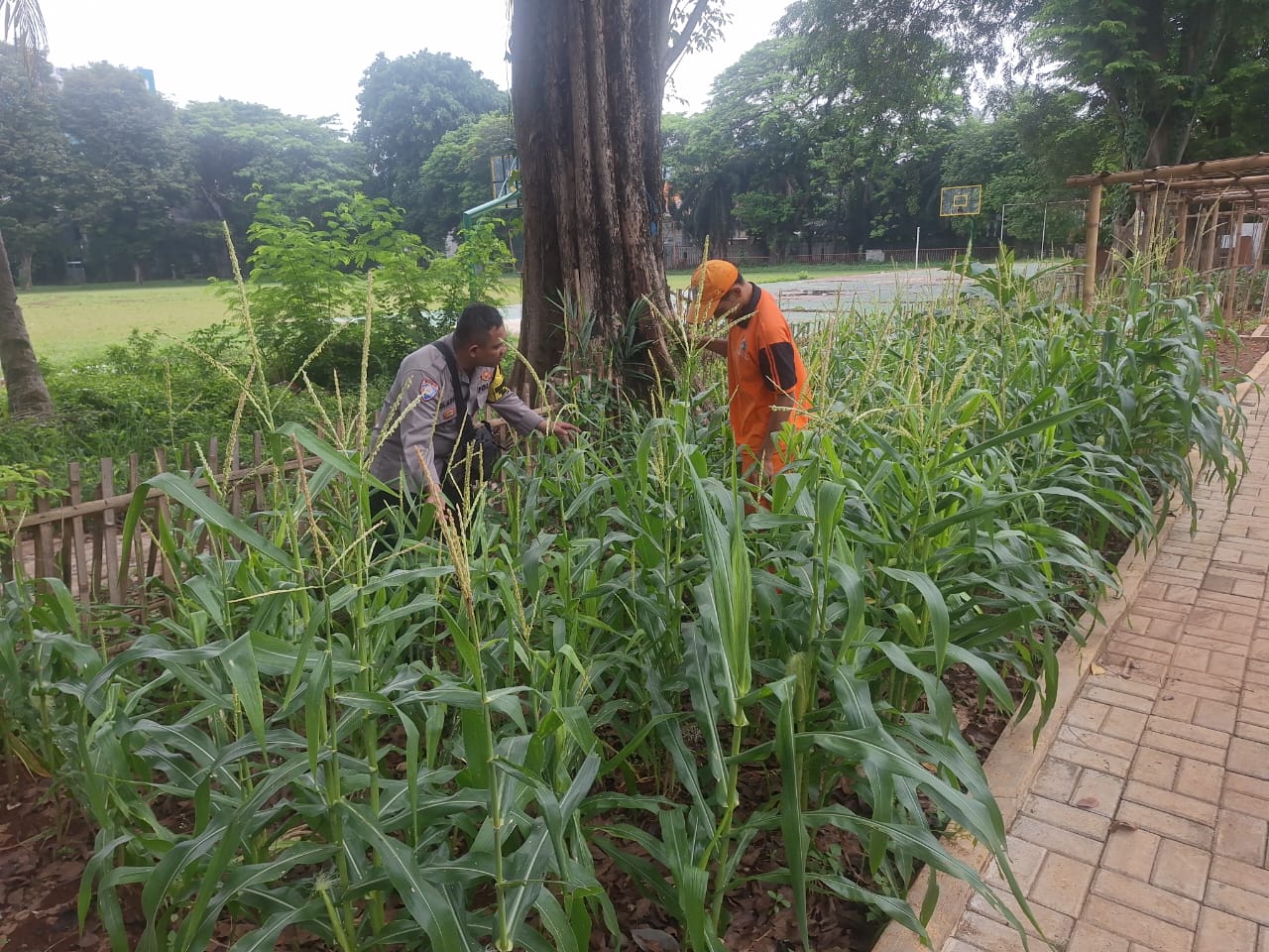 Kegiatan dimulai sekitar pukul 12.50 WIB, meliputi perawatan tanaman jagung yang sudah tumbuh setinggi lebih dari satu meter, berbunga, dan mulai berbuah. Selain jagung, berbagai jenis tanaman lain seperti tomat, timun suri, buncis, sawi, singkong, pisang, cabe, buah naga, melon, sirsak, terong, jahe, kunyit, dan sukun juga dirawat di lahan seluas ±400 meter persegi tersebut.