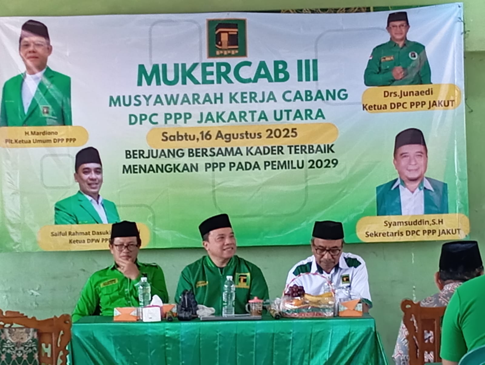 detikhukum.id, || Jakarta Utara, 16 Agustus 2025 – Dewan Pimpinan Cabang (DPC) Partai Persatuan Pembangunan (PPP) Jakarta Utara menggelar Musyawarah Kerja Cabang (MUKERCAB) III pada Sabtu, 16 Agustus 2025 di Kantor DPC PPP Jakarta Utara, Jalan Beting No. 2 RT 2/9, Kelurahan Semper Barat, Kecamatan Cilincing, Jakarta Utara.