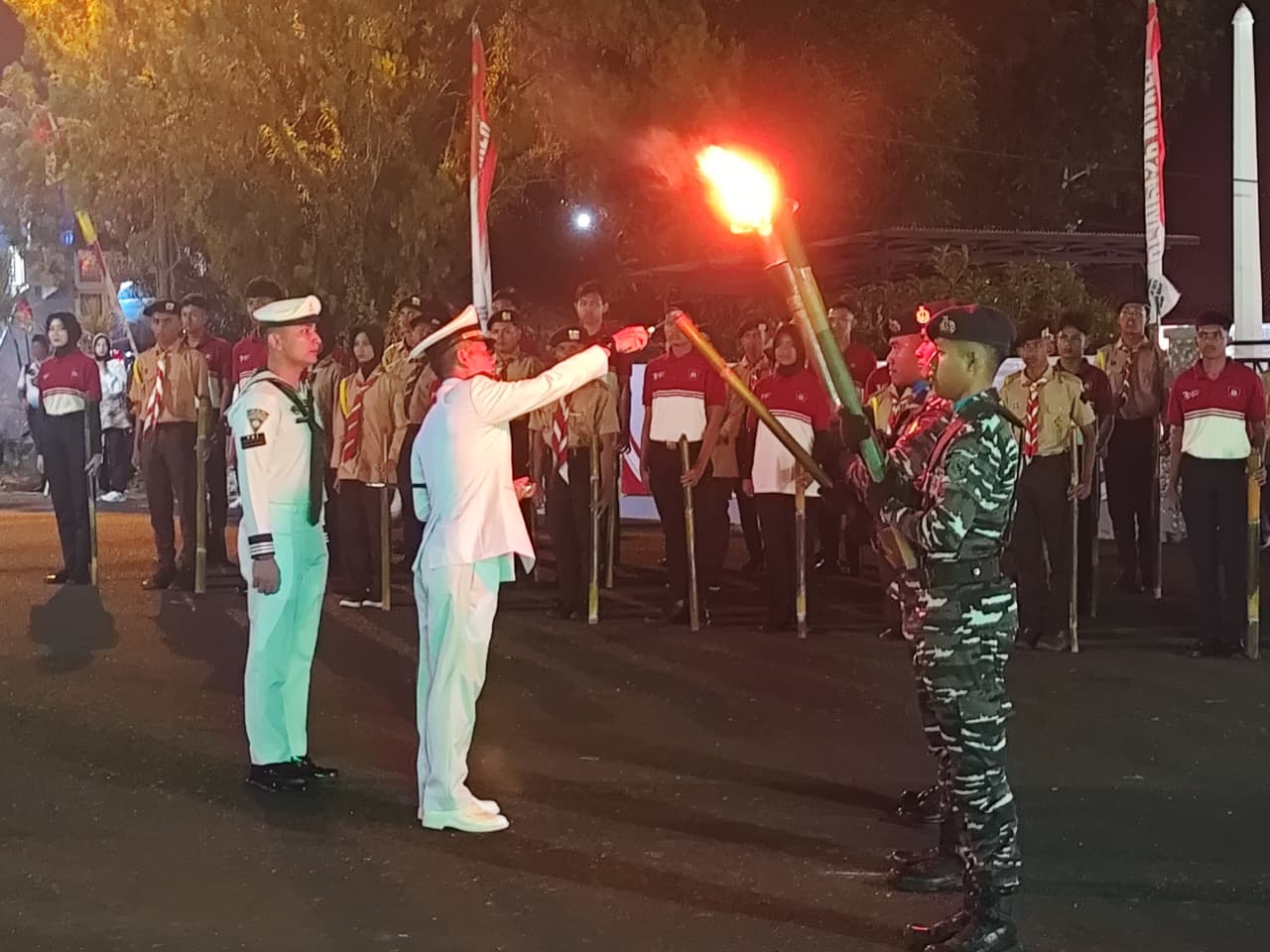 detikhukum.id, || TNI AL, Sabang,- Bertempat di Pendopo Walikota Sabang, Jalan Diponegoro, Gampong Kuta Ateuh, Kecamatan Sukakarya Kota Sabang, telah dilaksanakan Upacara Penetapan Waktu (Taptu) dan Pawai Obor dalam rangka menyambut Hari Ulang Tahun Ke-80 Republik Indonesia. Bertindak sebagai Inspektur Upacara Komandan Lanal Sabang Kolonel Laut (P) Sadimin, S.E., M.Tr.Opsla., dan Komandan Upacara Kaur Klinik Rumkital J. Lilipory Lettu Laut (K) Cholid Akbar Alchudri, S, FARN. APT. yang dihadiri oleh Walikota Sabang H. Zulkifli H. Adam serta sejumlah pejabat di lingkungan Pemko Sabang dan Forum Koordinasi Pimpinan Daerah (Forkopimda) Kota Sabang, Sabtu (16/08/2025).