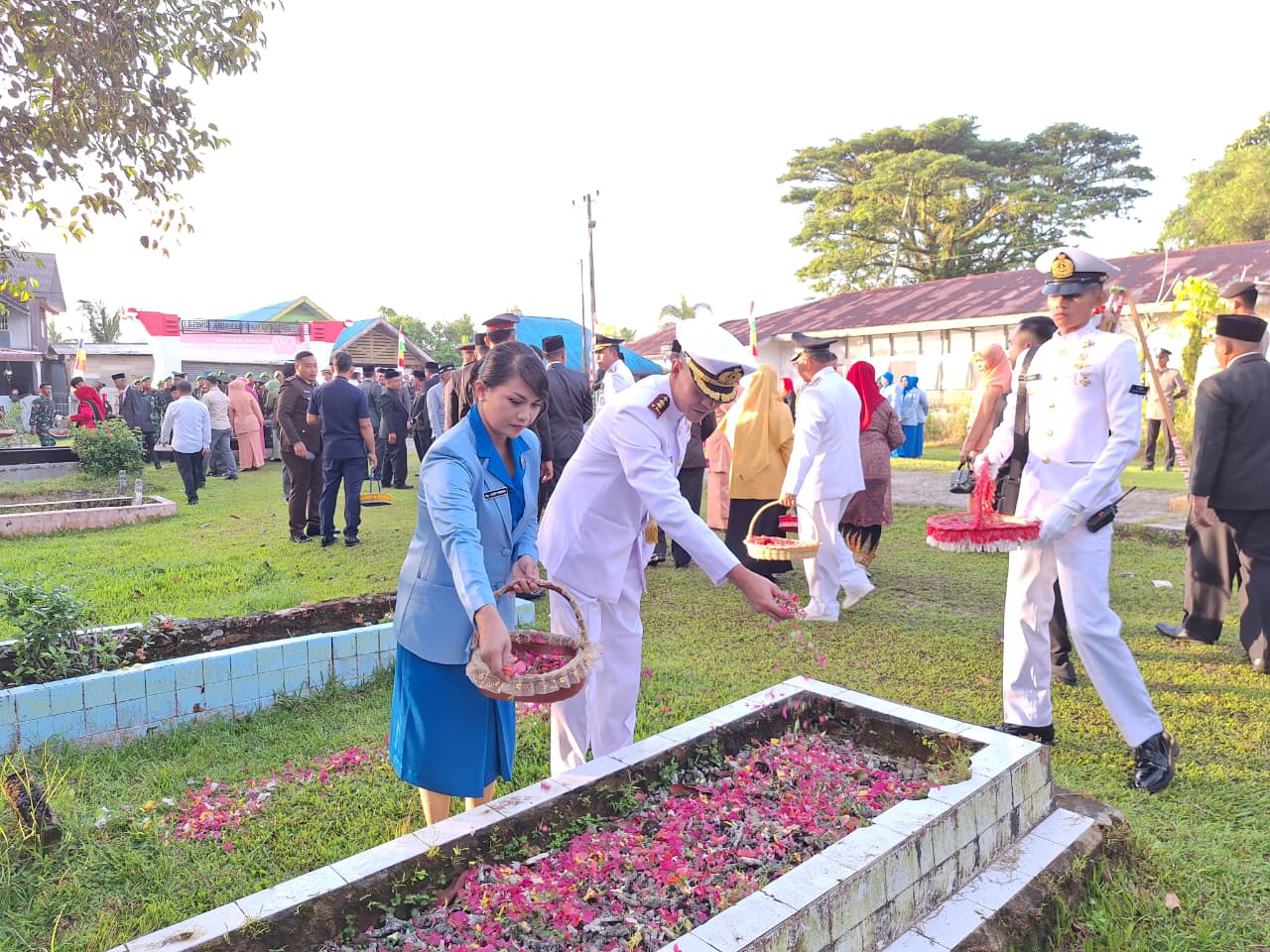 detikhukum.id, || TNI AL, Simeulue,- Dalam rangka memperingati HUT Ke-80 Kemerdekaan RI, Komandan Pangkalan TNI Angkatan Laut Simeulue Letkol Laut (P) Wisnu Pryangga N., S.T., M.Tr.Opsla. didampingi oleh Ketua Cabang 8 Korcab I DJA I Ny. Lady Wisnu Pryangga beserta Prajurit Lanal Simeulue dan Forkopimda Kabupaten Simeulue melaksanakan Upacara Ziarah dan Tabur Bunga di Taman Makam Bahagia, Desa Suka Karya, Kabupaten Simeulue, Minggu (17/8/2025).