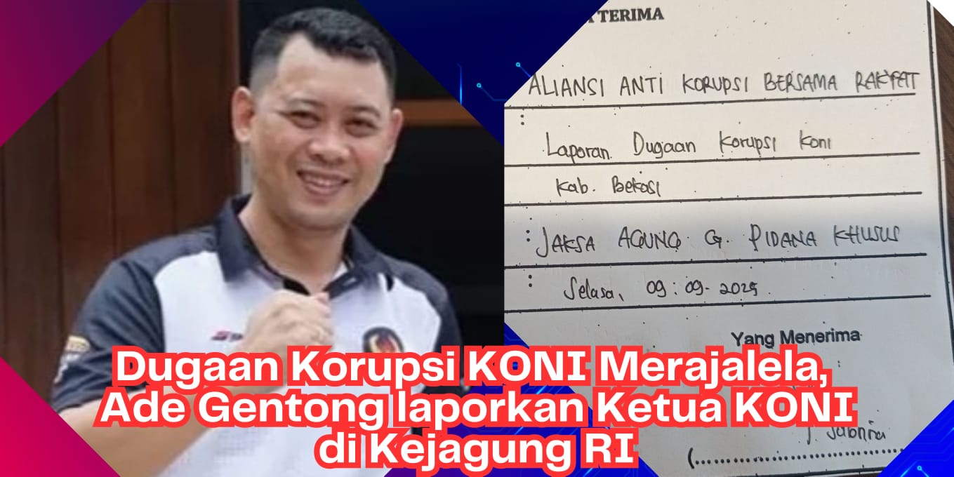 detikhukum.id,- Jakarta,-Ketua Umum Aliansi Anti Korupsi Bersama Rakyat (ANKER) Ade Gentong melaporkan Ketua Komite Olahraga Nasional Indonesia (Koni) Kabupaten Bekasi Reza Lutfi Hasan kepada kejaksaan agung RI dengan menuntut dugaan korupsi dana Hibah, ketua umum ANKER Ade Gentong menyampaikan bahwa Terdapat dugaan korupsi yang dilakukan oleh Reza Lutfi Hasan selaku Ketua Koni Terkait adanya dugaan Korupsi, Gratifikasi dan penyalahgunaan jabatan yang dilakukan oleh Reza Lutfi Hasan Ketua komite Olahraga Nasional Indonesia (KONI) Kabupaten Bekasi.