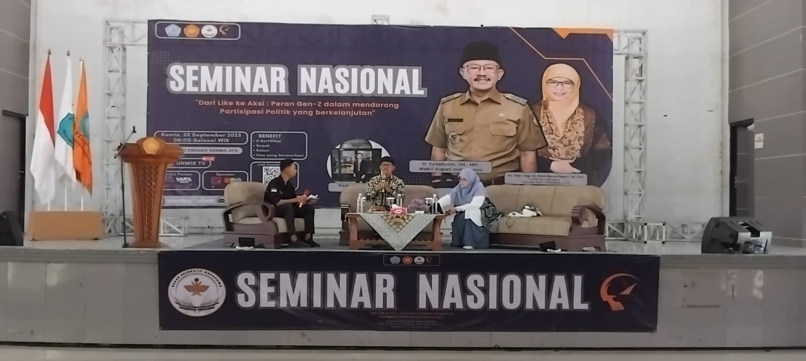 Hal itu disampaikan Wakil Bupati Indramayu, Syaefudin, saat menjadi pemateri utama dalam Seminar Nasional bertema “Dari Like ke Aksi: Peran Gen Z dalam Mendorong Partisipasi Politik yang Berkelanjutan” di Aula Nyi Endang Dharma Ayu Universitas Wiralodra (UNWIR), Kamis (25/09/2025).