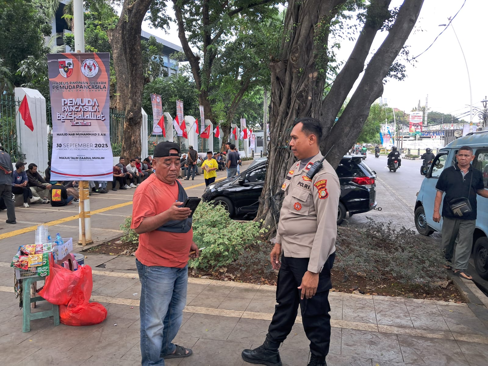 Kehadiran aparat kepolisian di sekitar Tugu Proklamasi dilakukan sebagai langkah preventif dalam menjaga ketertiban masyarakat sekaligus mengawal jalannya penyampaian pendapat di muka umum agar berlangsung damai.