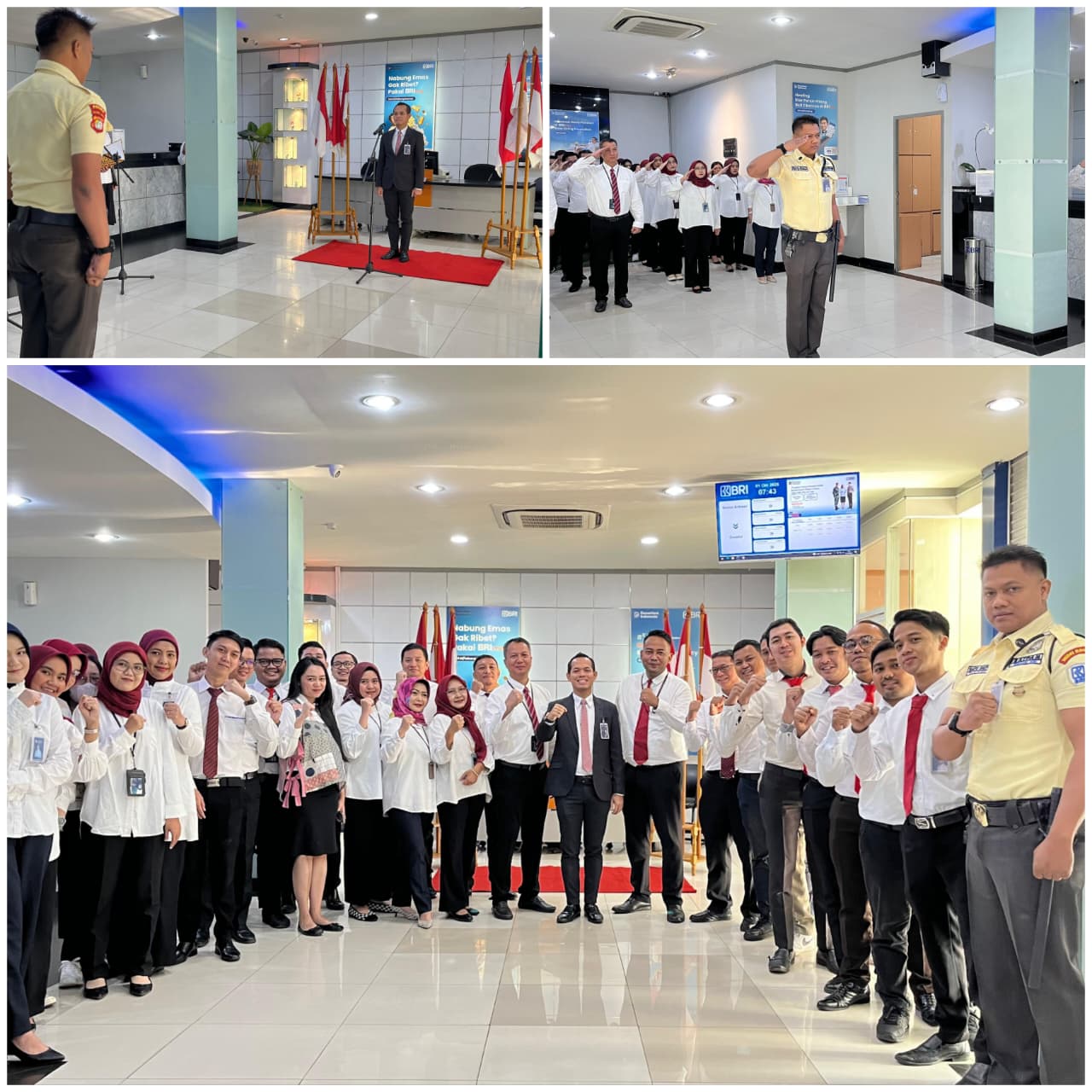 Upacara berlangsung khidmat di halaman kantor cabang dengan dihadiri oleh pimpinan, pekerja, serta jajaran manajemen BRI.